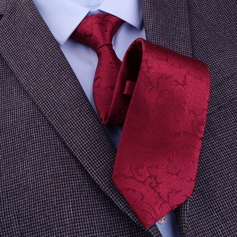 酒红微纹领带 (2)