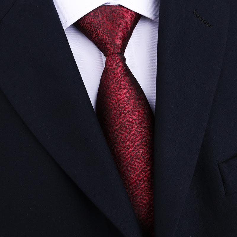 酒红微纹领带 (3)