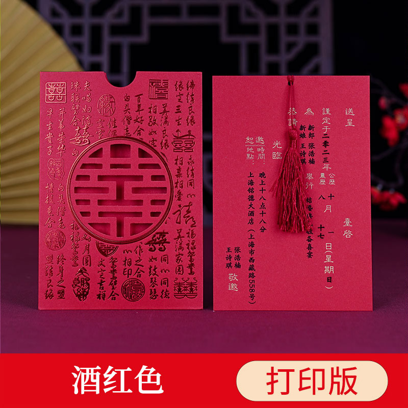 • 중국식 중공 와인 레드 인쇄 버전(50매 팩)