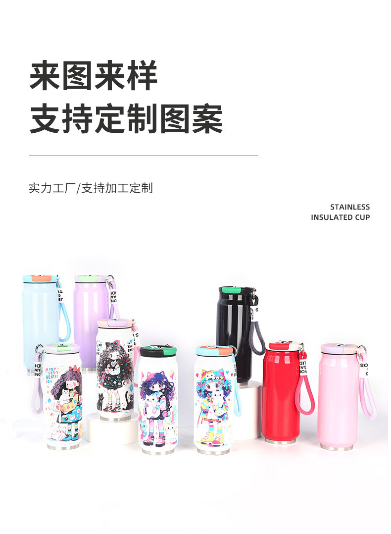 국경 304 스테인레스 스틸 보온병 컵 캔 마카롱 대용량 자동차 컵 고무 페인트 콜라 맞춤형