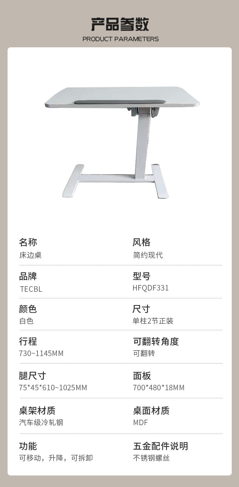 • 패널 800*400mm; 높이 660-1040mm