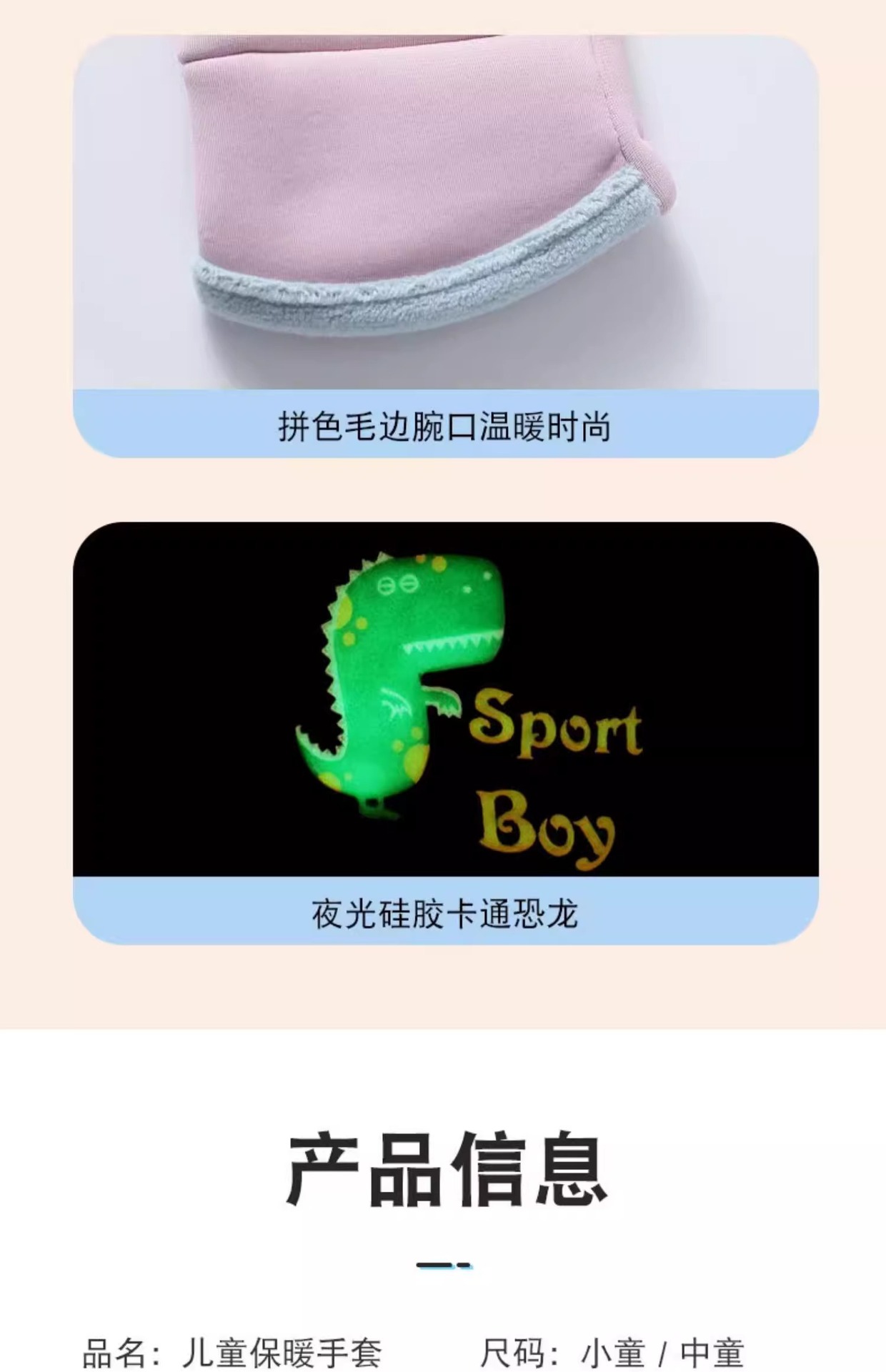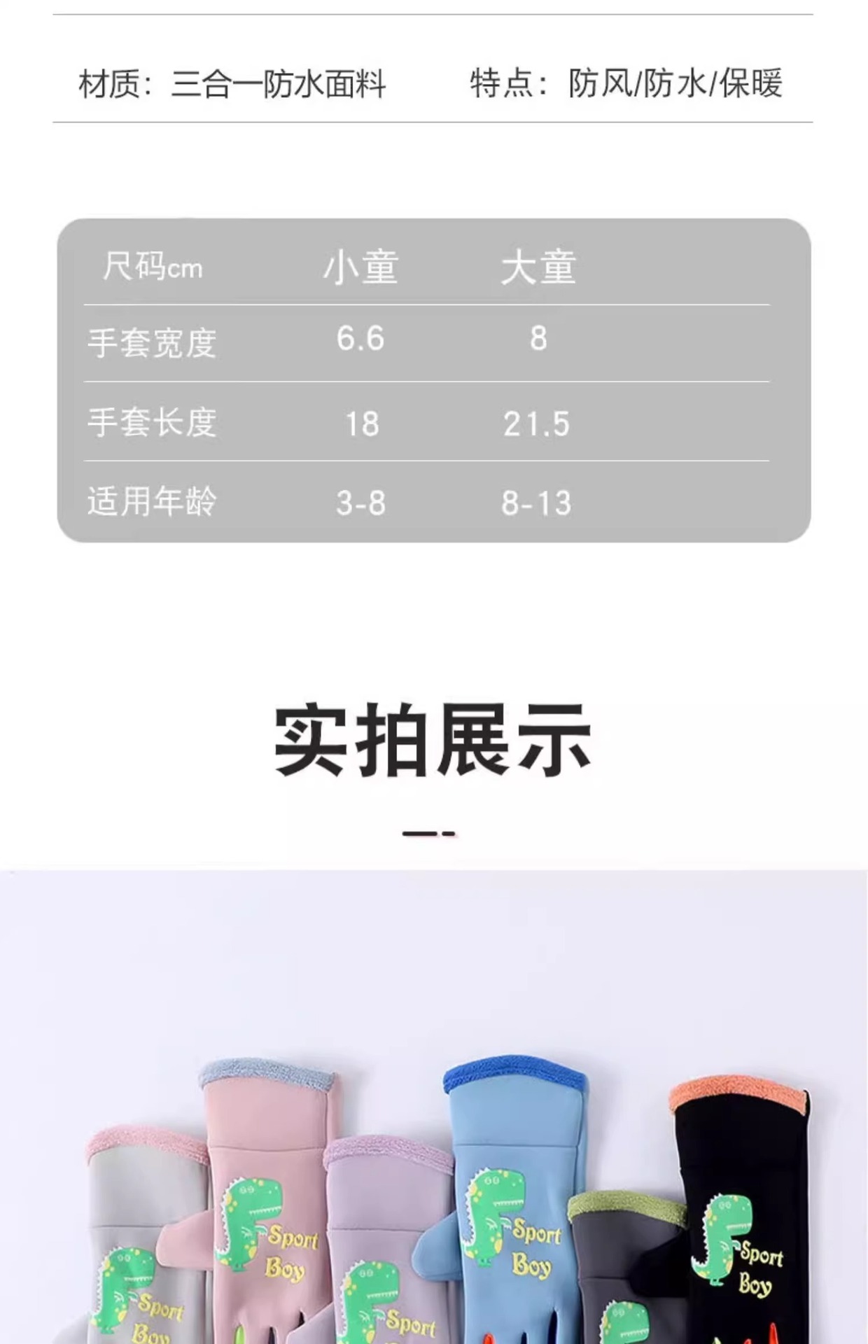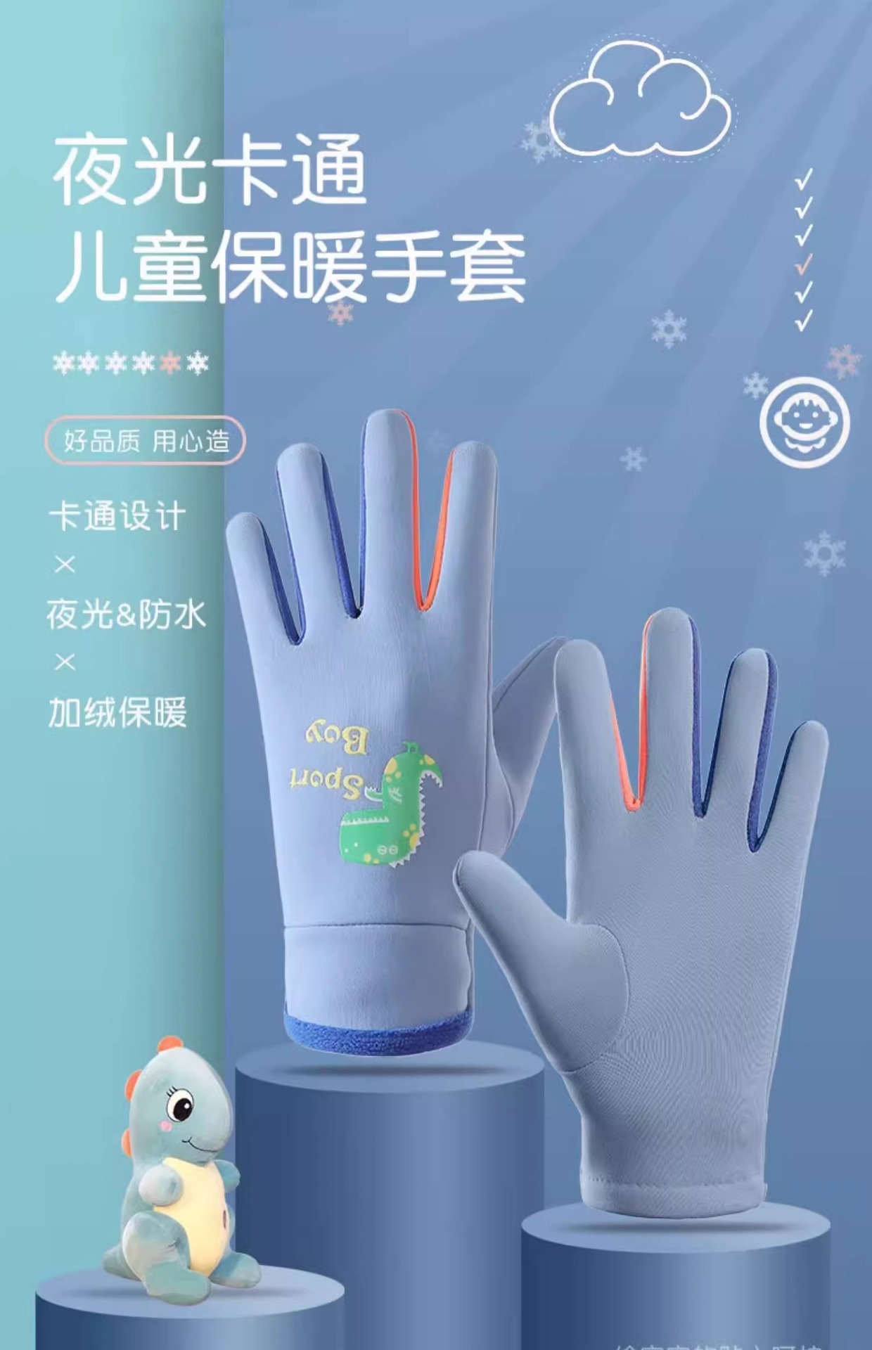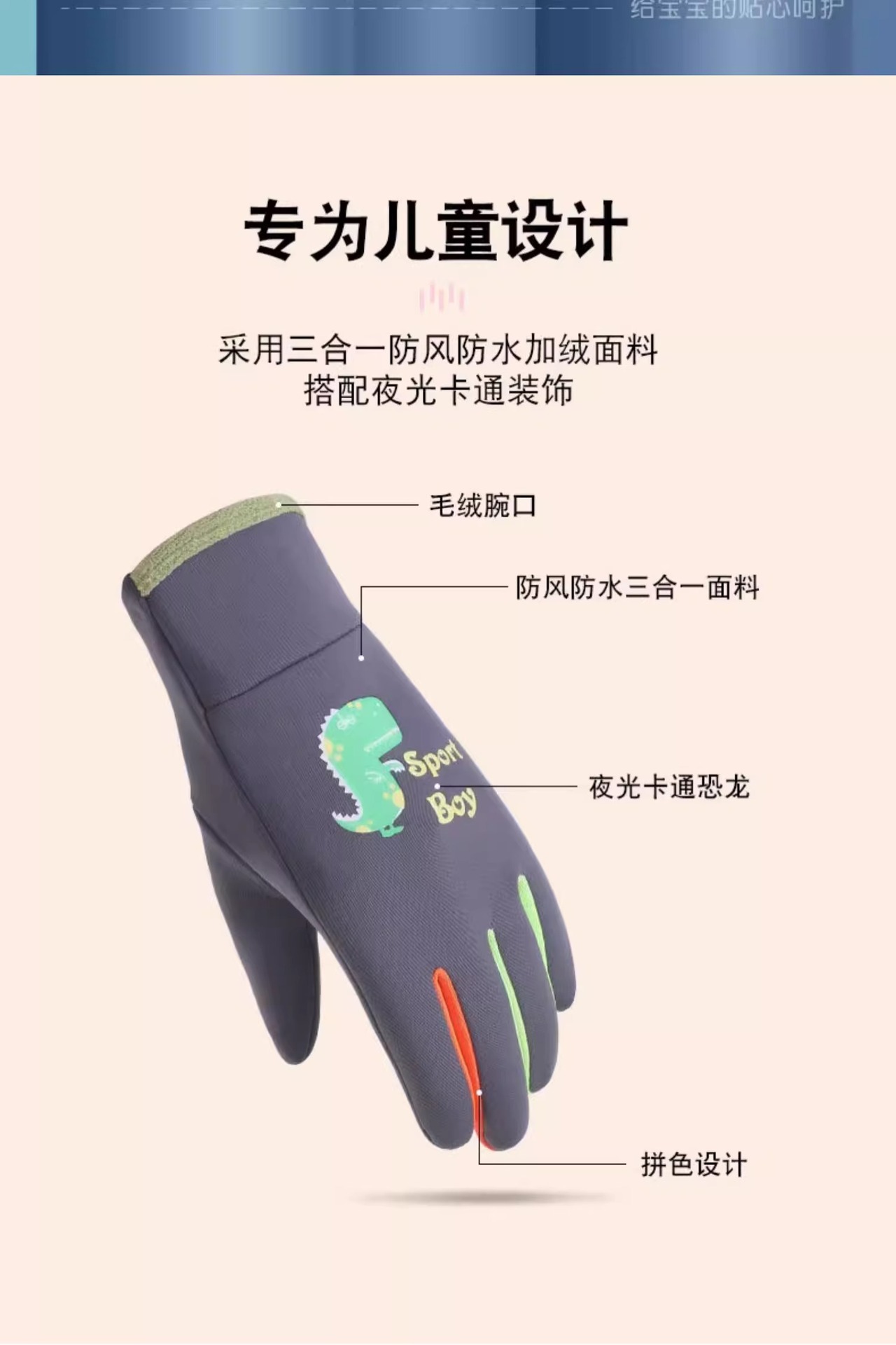 작은 공룡 어린이 따뜻한 장갑 야외 어린이 유치원 어린이 빛나는 방수 차가운 승마 장갑 도매스토어 가기