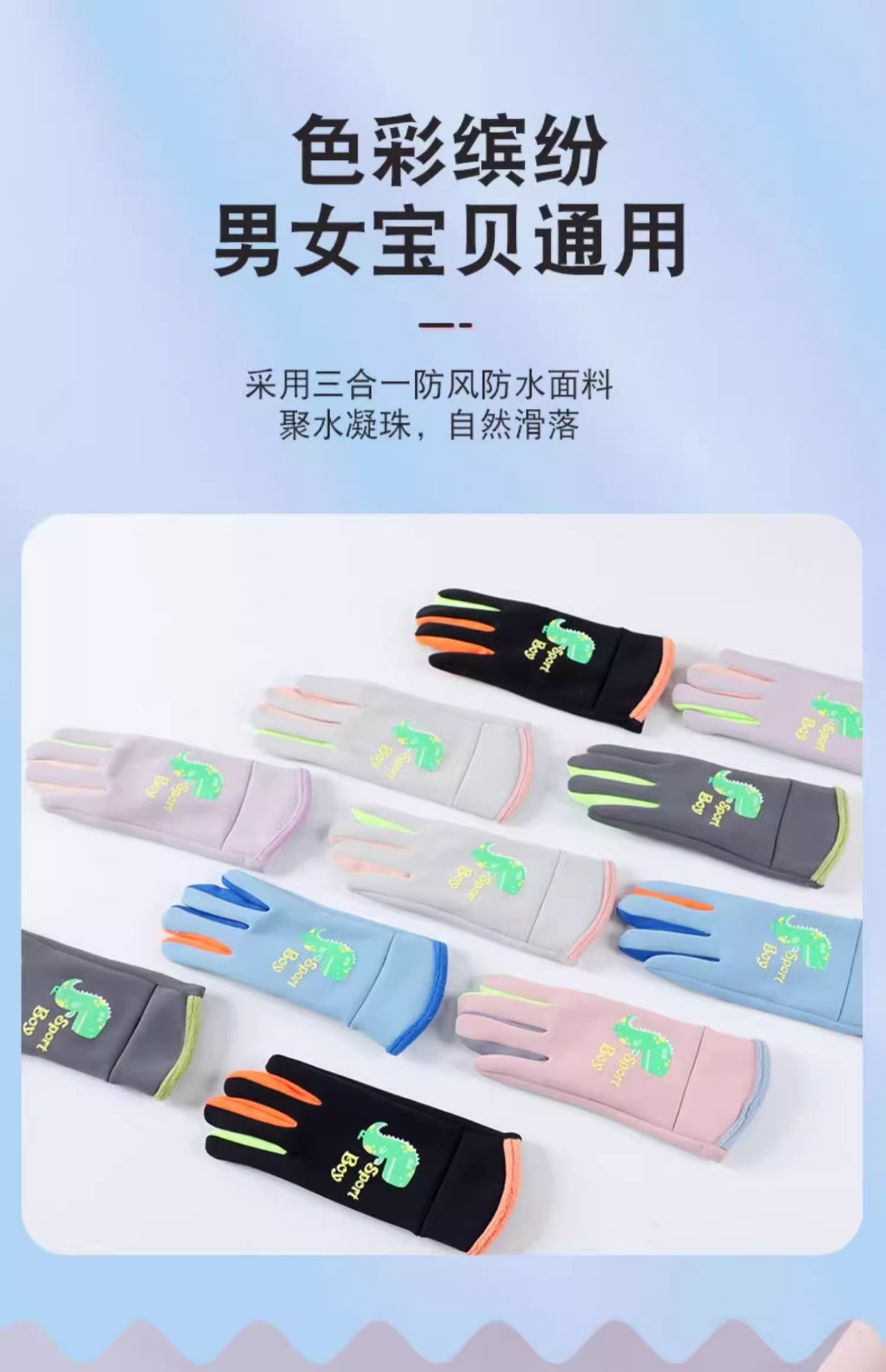 작은 공룡 어린이 따뜻한 장갑 야외 어린이 유치원 어린이 빛나는 방수 차가운 승마 장갑 도매