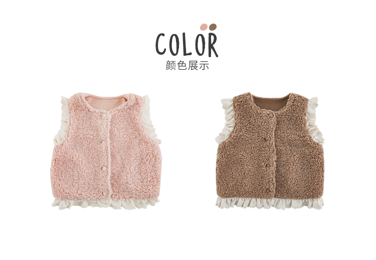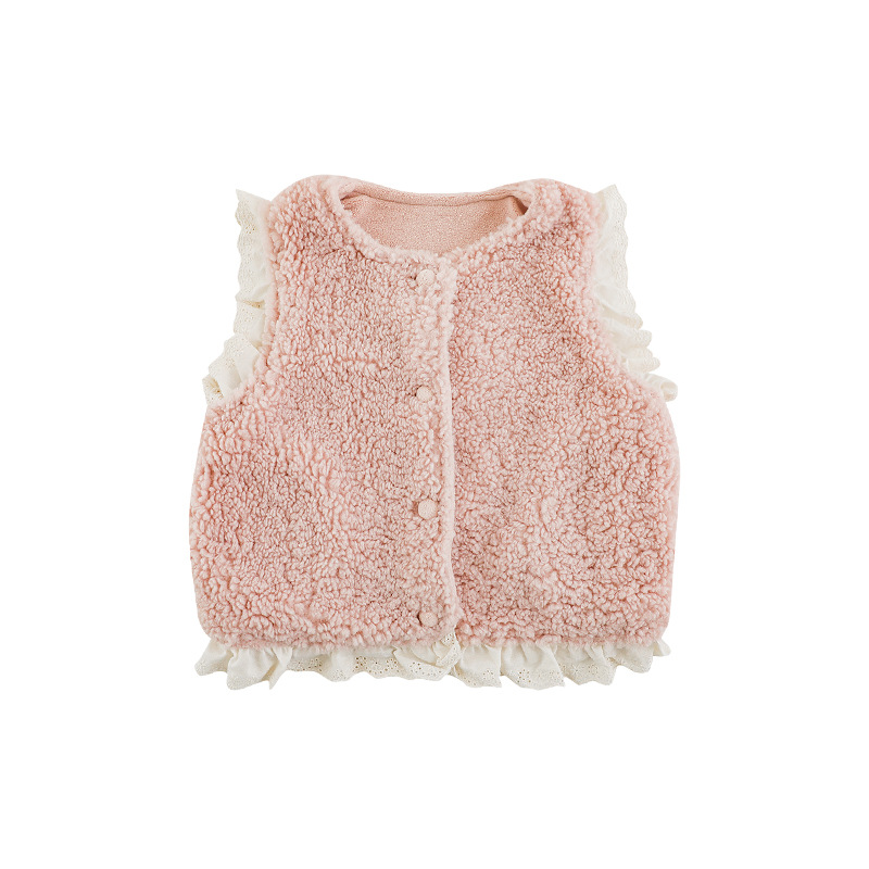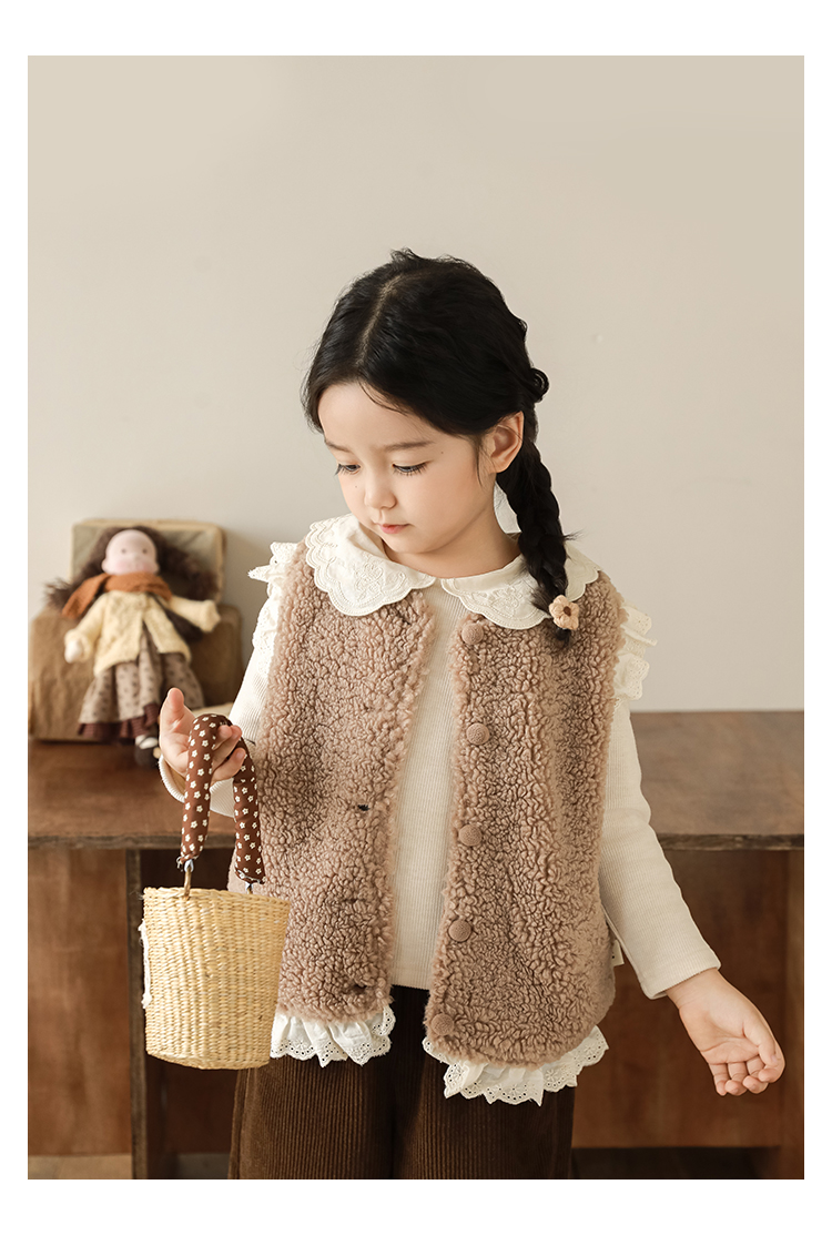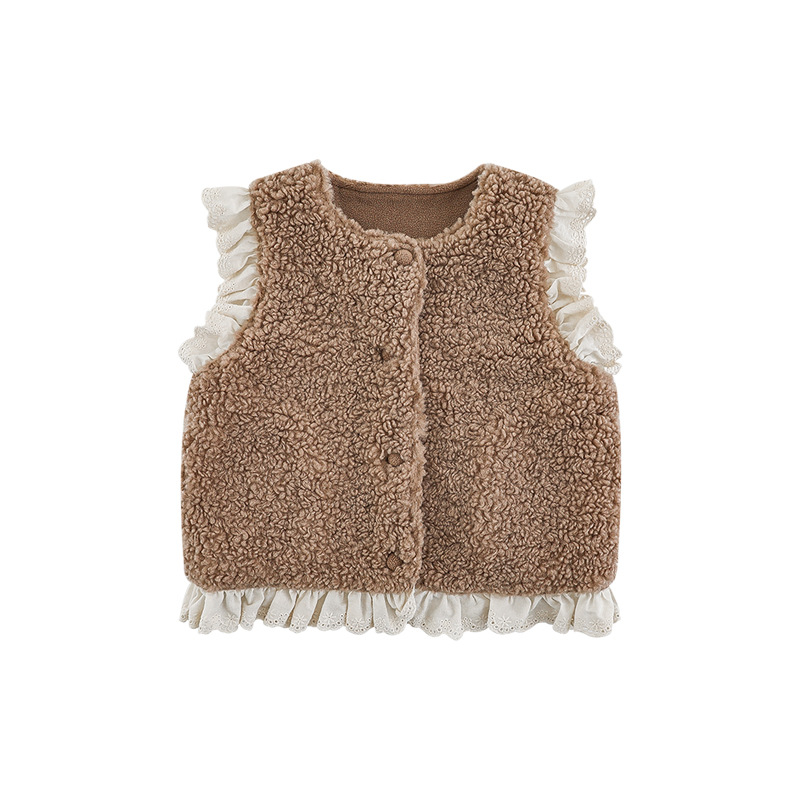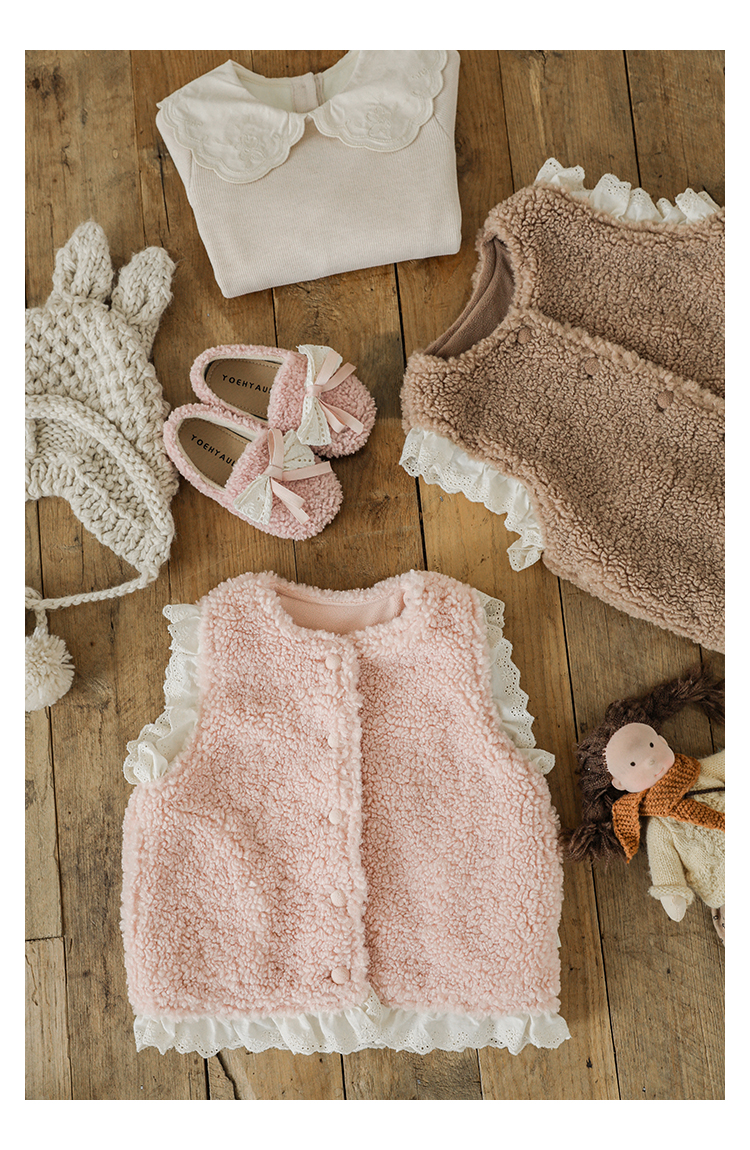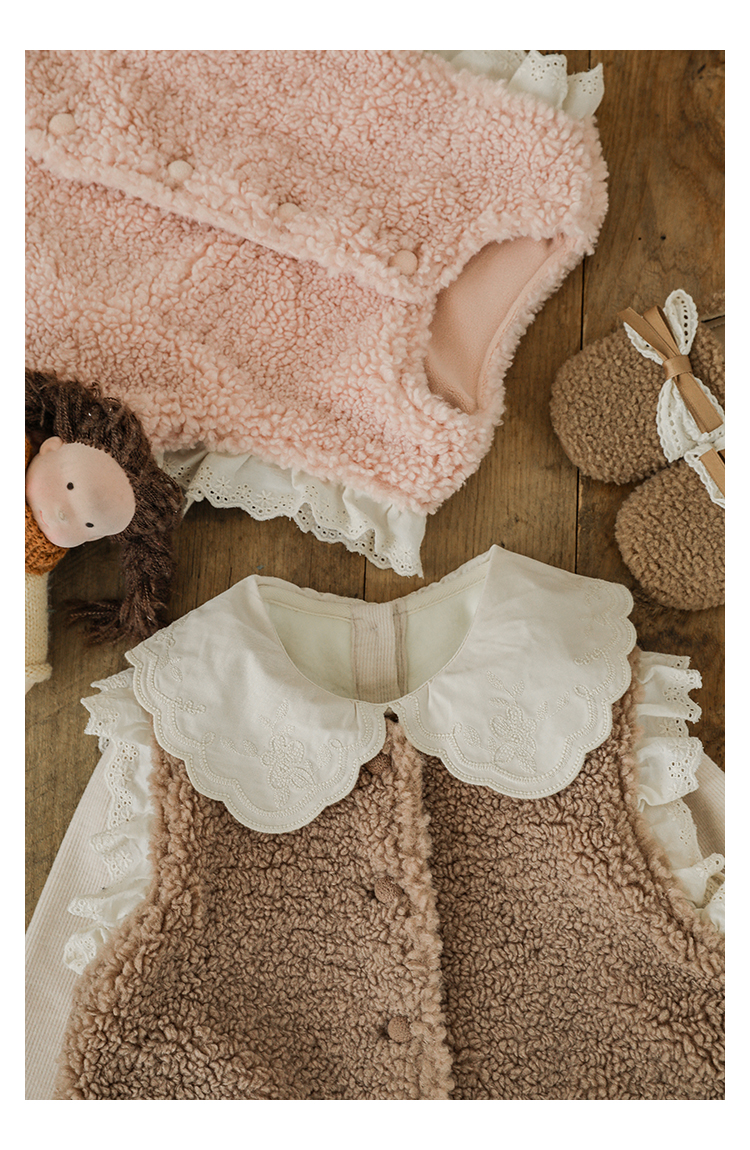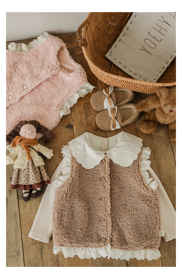 소녀 레이스 봉제 조끼 짧은 겨울 서양 스타일 귀여운 따뜻한 기모 두꺼운 캐주얼 조끼스토어 가기