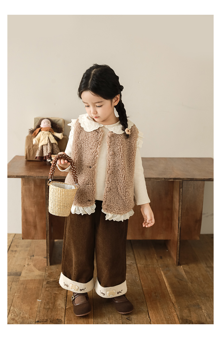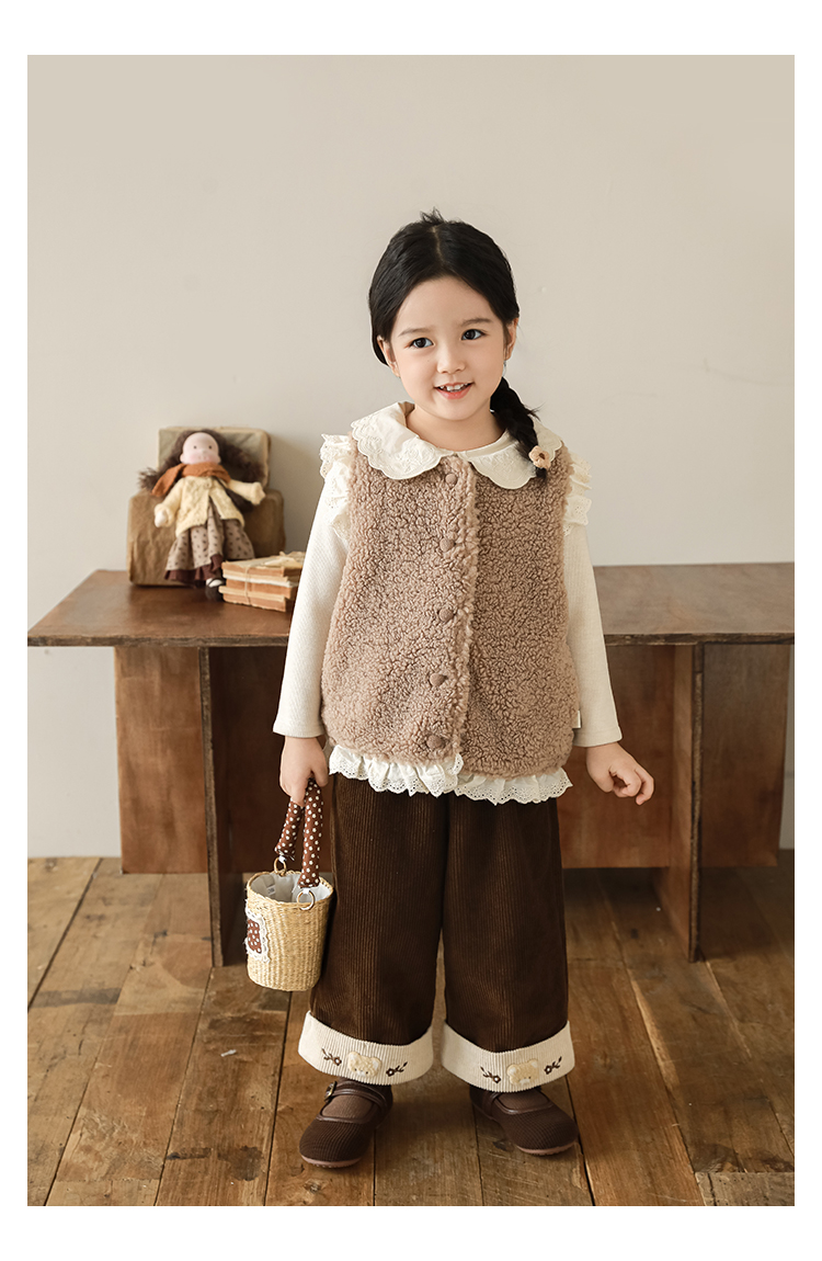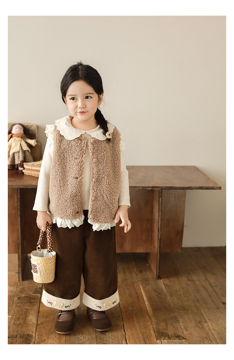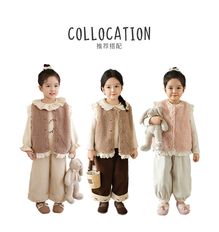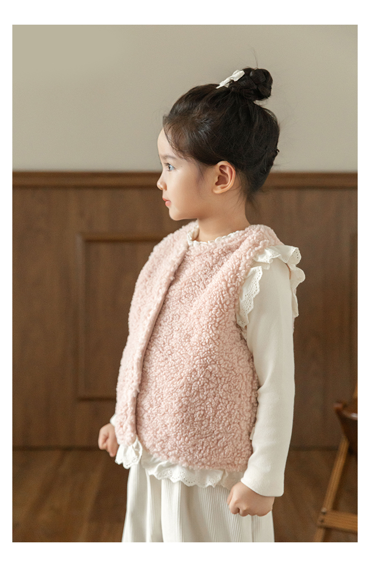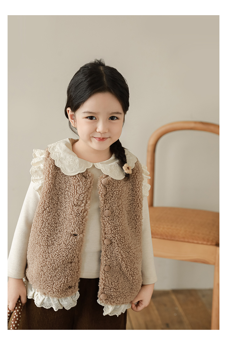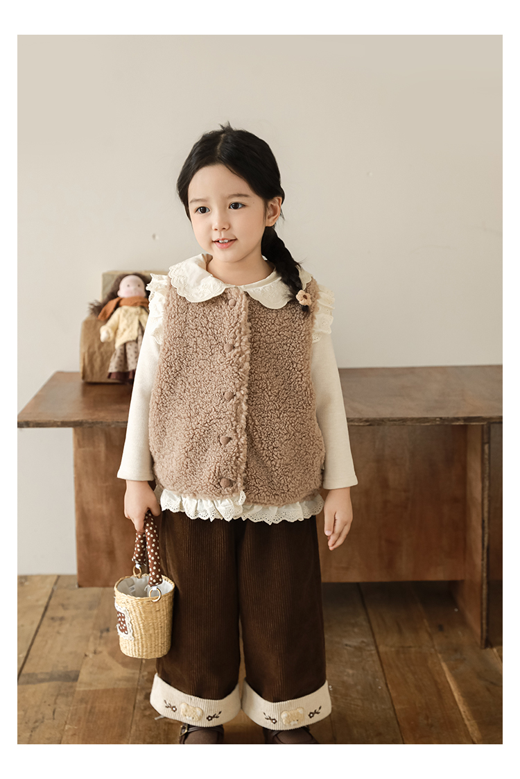 소녀 레이스 봉제 조끼 짧은 겨울 서양 스타일 귀여운 따뜻한 기모 두꺼운 캐주얼 조끼스토어 가기