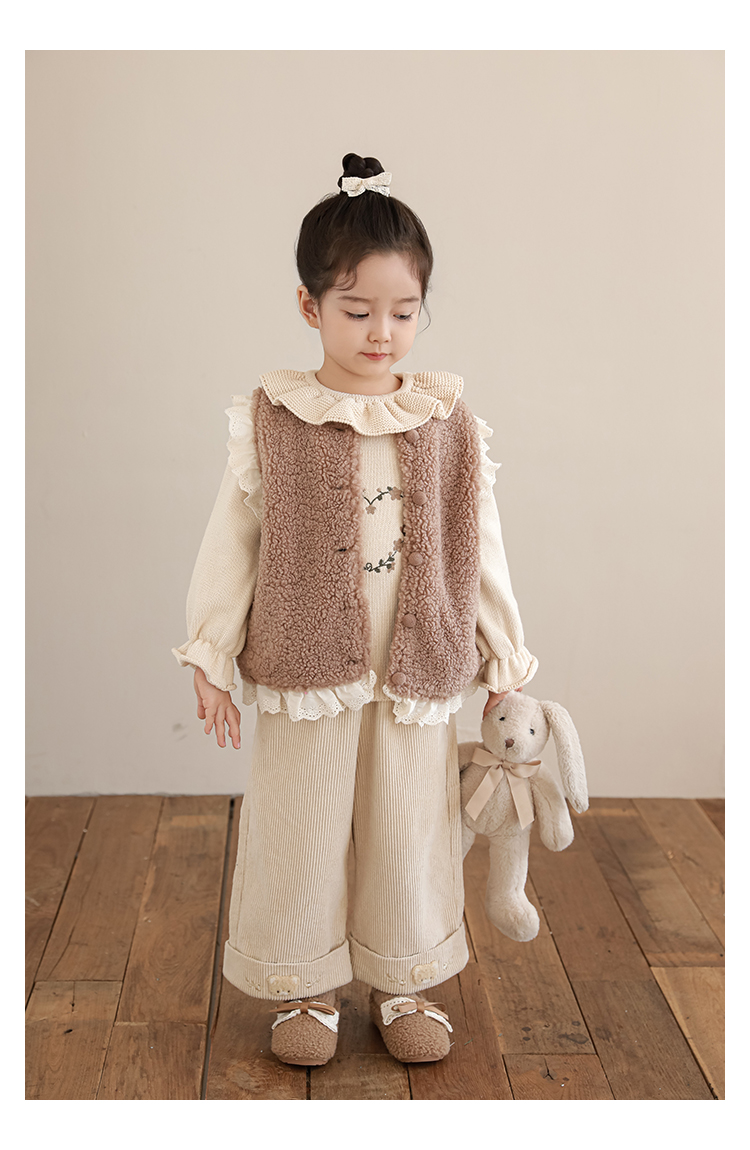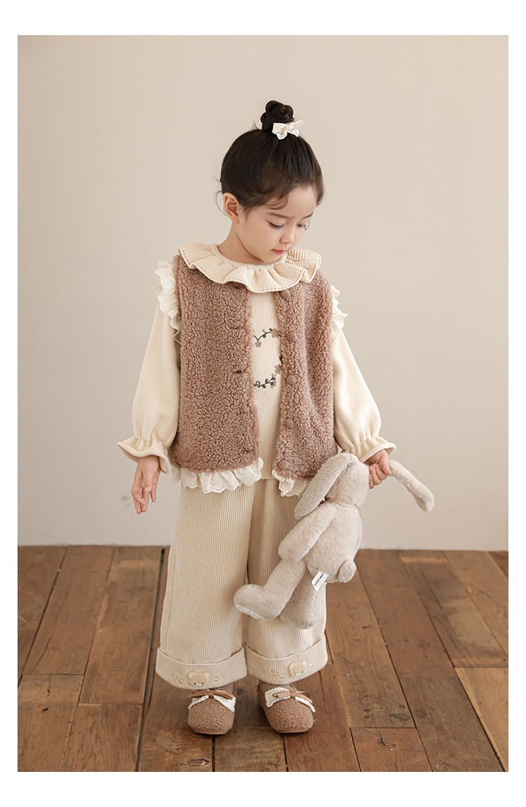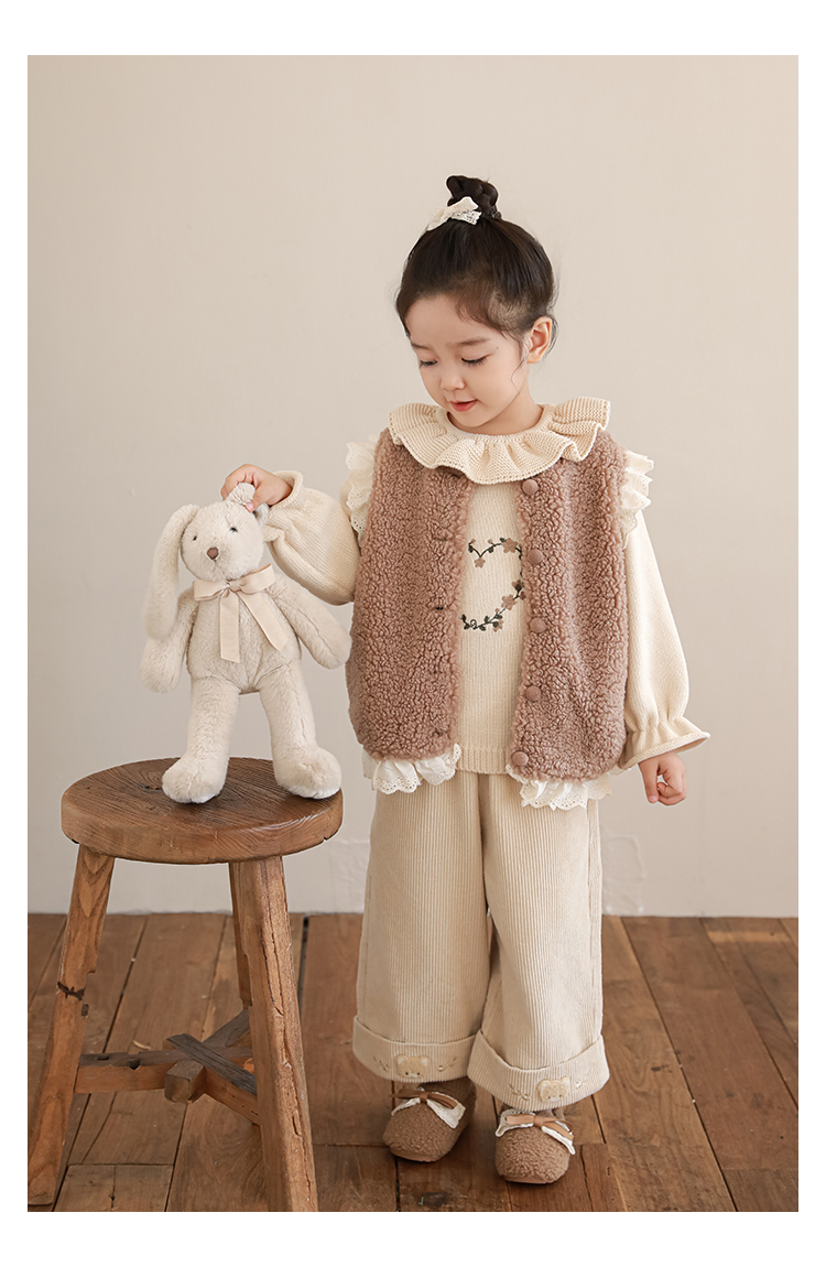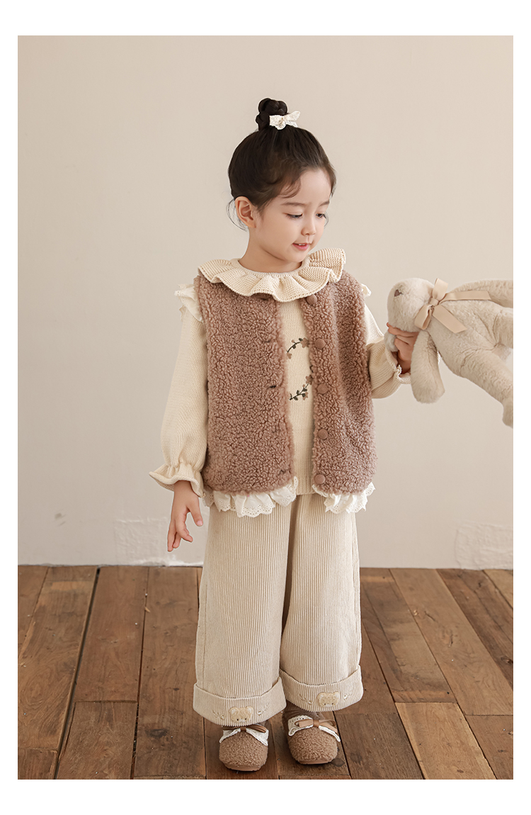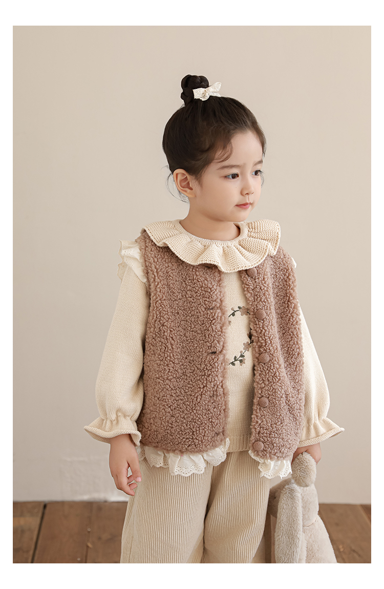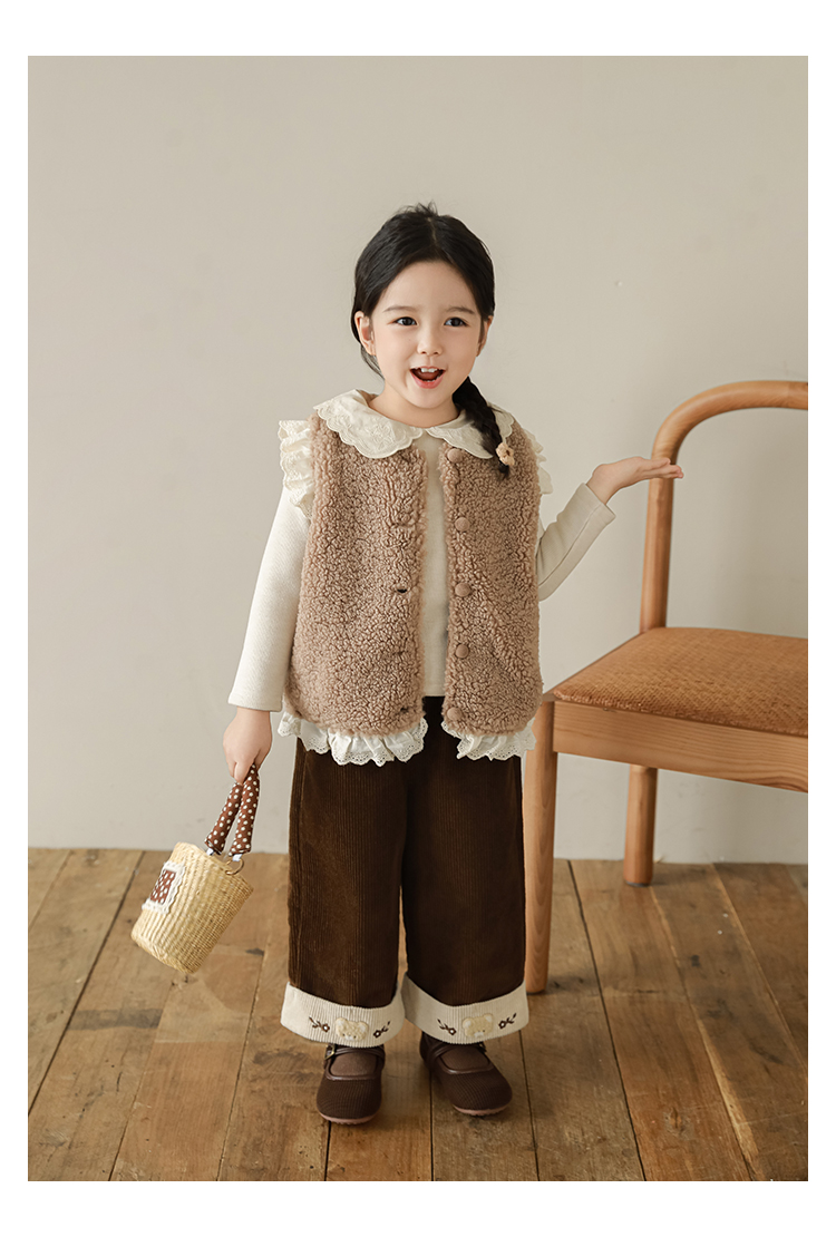 소녀 레이스 봉제 조끼 짧은 겨울 서양 스타일 귀여운 따뜻한 기모 두꺼운 캐주얼 조끼스토어 가기