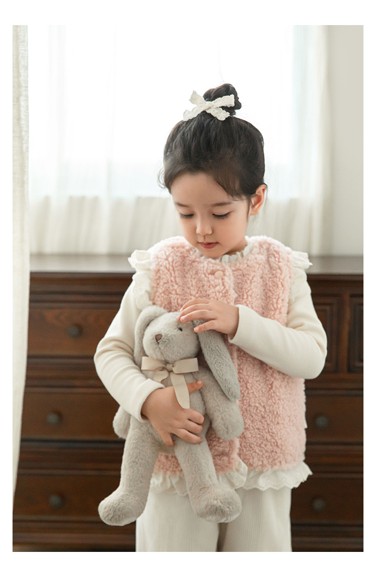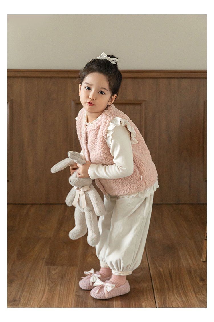 소녀 레이스 봉제 조끼 짧은 겨울 서양 스타일 귀여운 따뜻한 기모 두꺼운 캐주얼 조끼