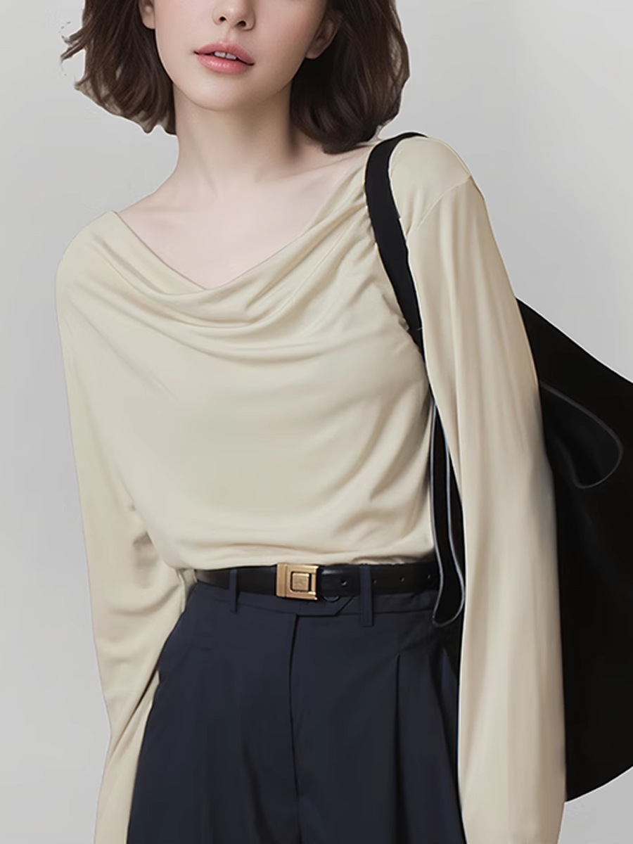 불규칙한 긴팔 티셔츠 여성용 2024 년 새 봄 및 가을 내베이스 셔츠 풀오버 블라우스 스윙 칼라 탑