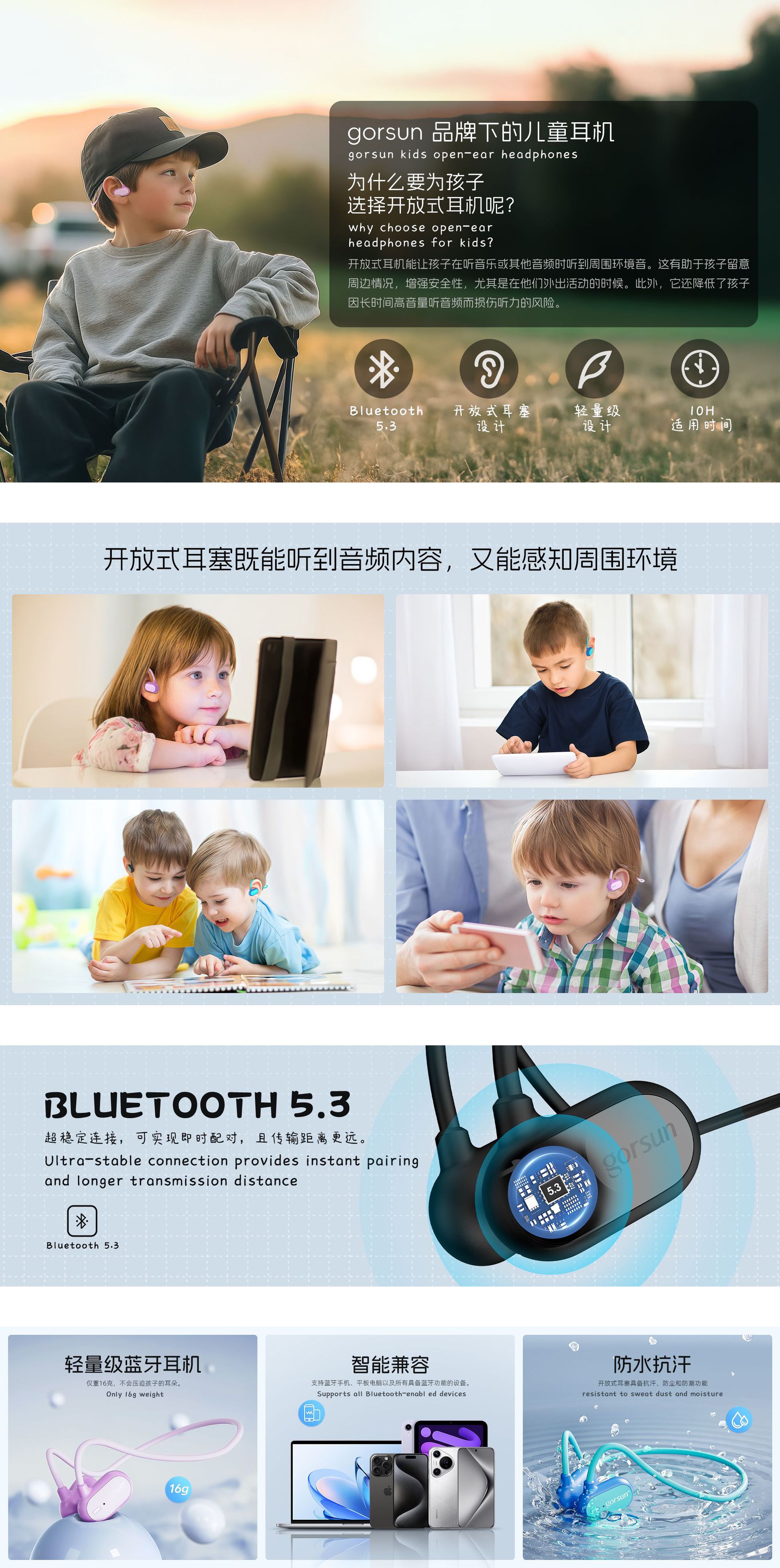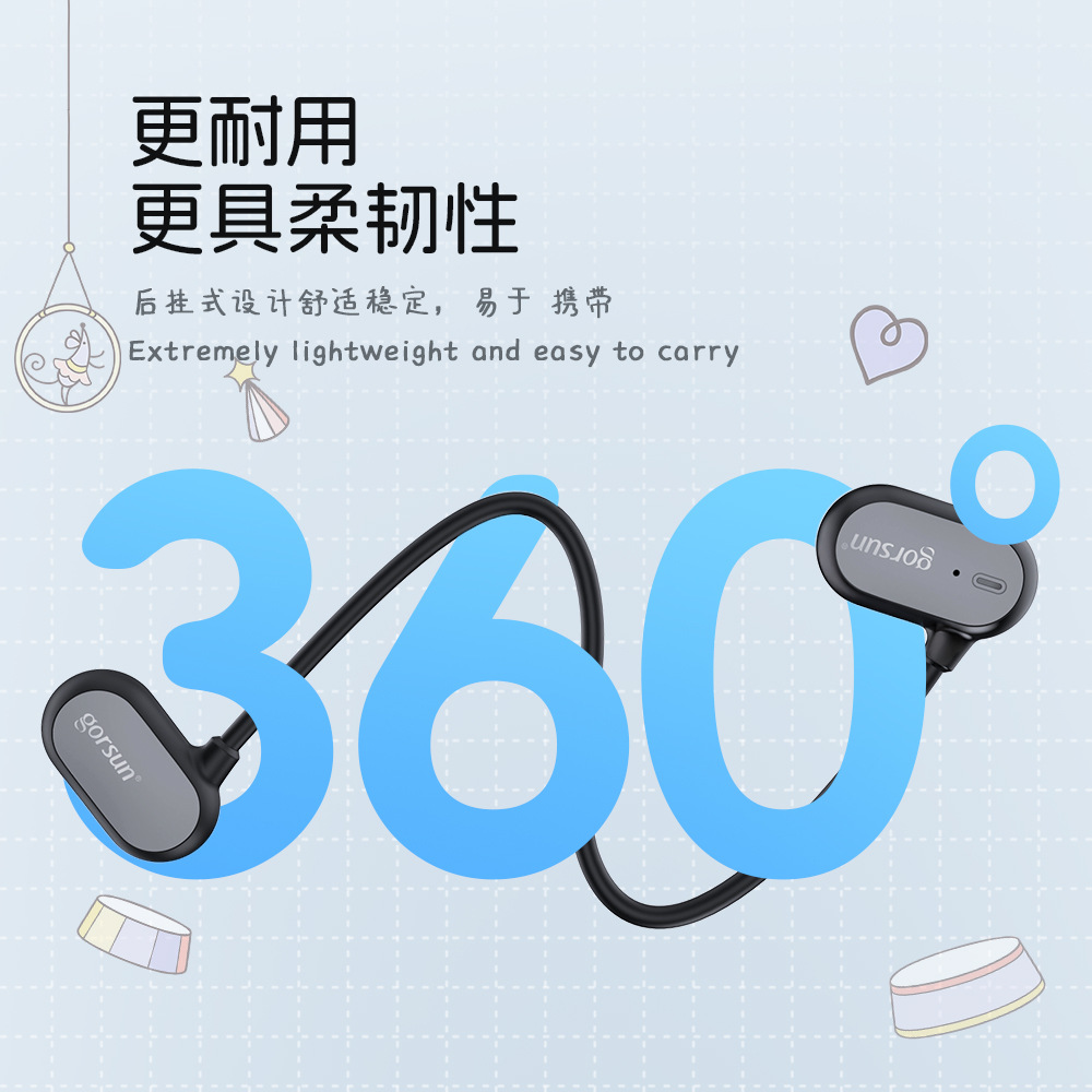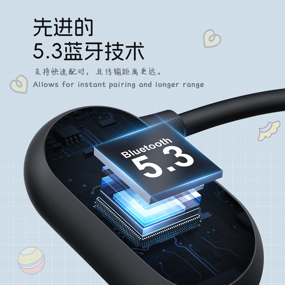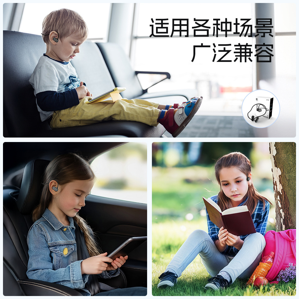 OWS 후면 장착형 오픈형 블루투스 이어폰, 공기 전도 방식 어린이 귀 보호 목걸이형 오픈형 이어폰