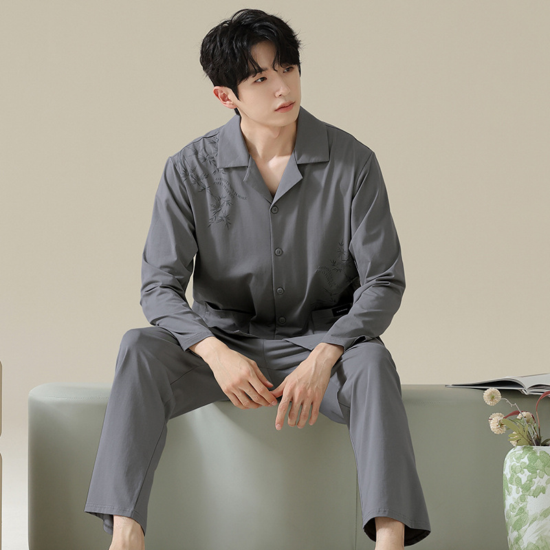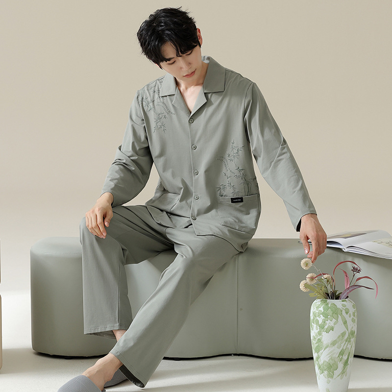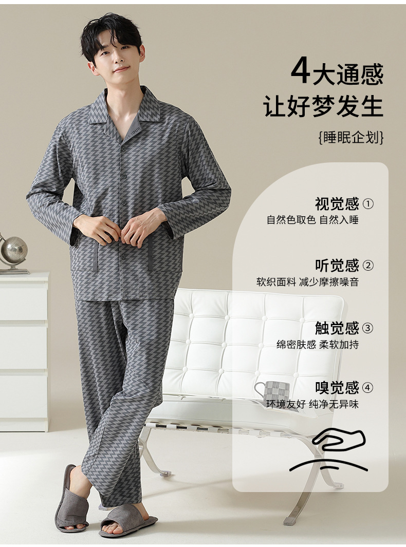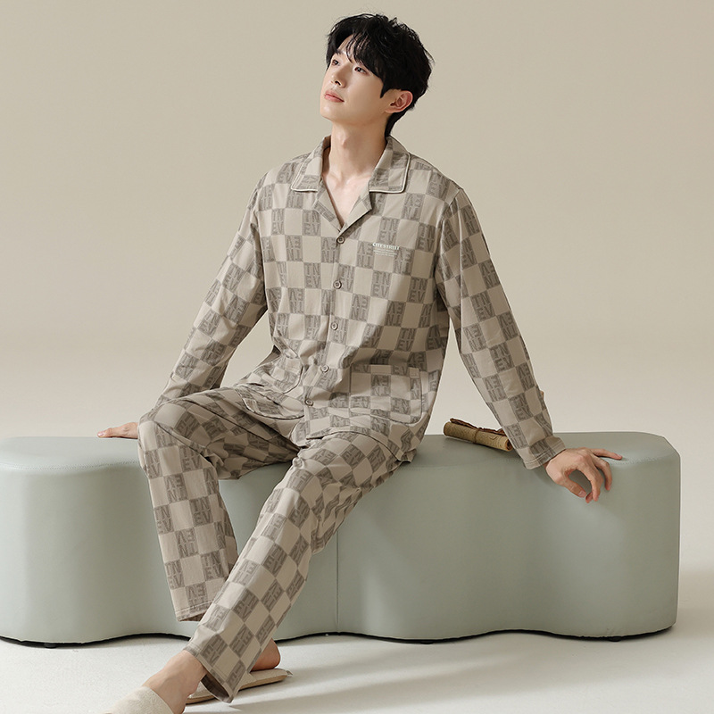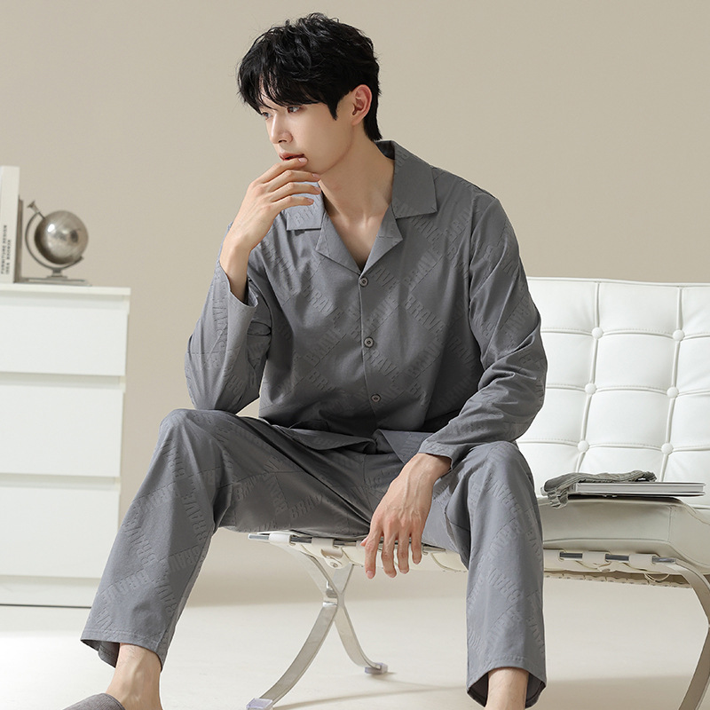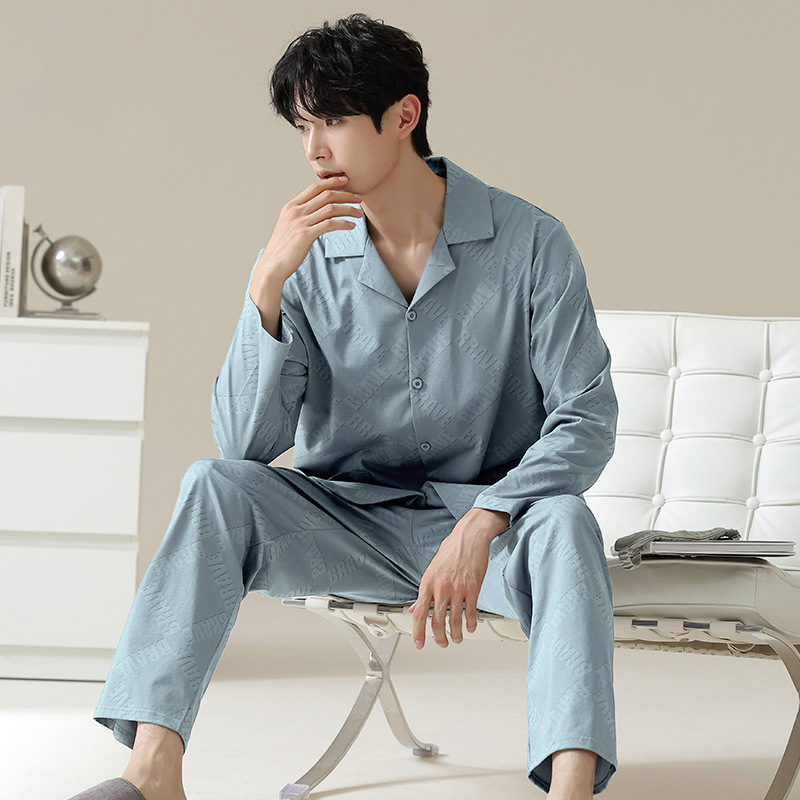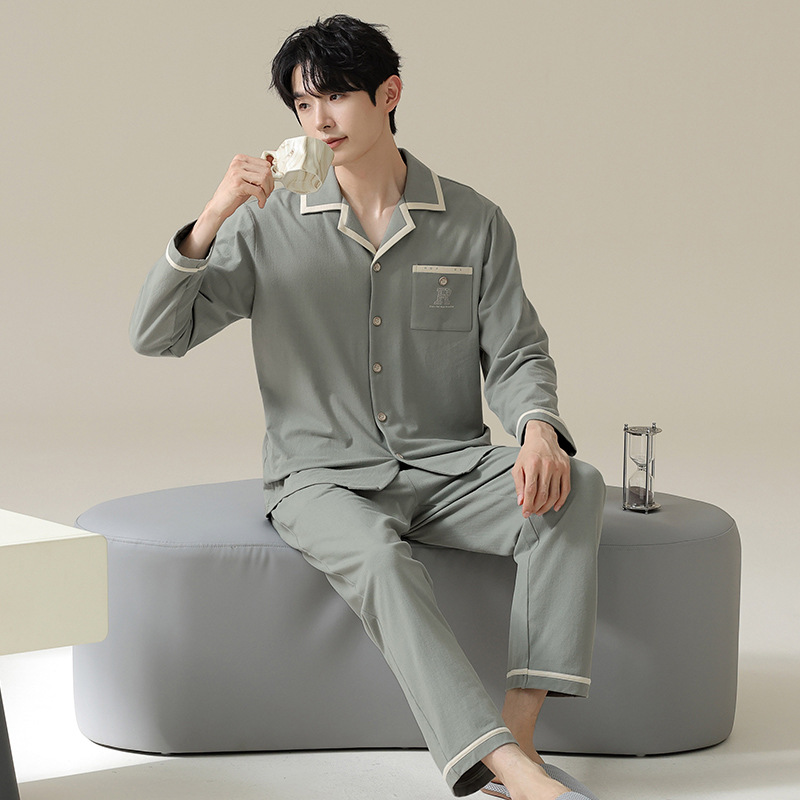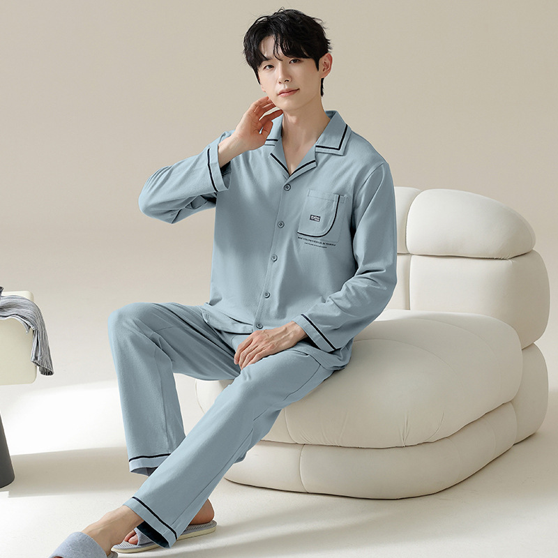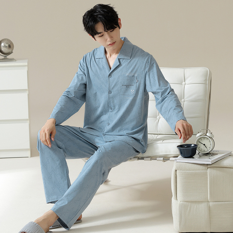 [Hyaluronic Acid] 2024 새로운 남성 잠옷 봄과 가을 모데일면 얇은 긴 소매 홈 옷 가을과 겨울 세트스토어 가기