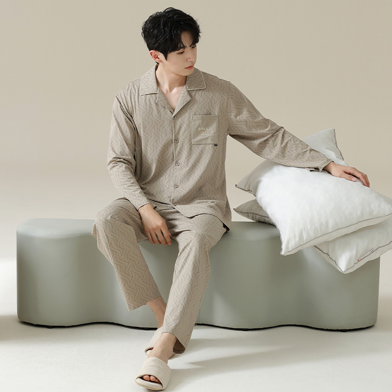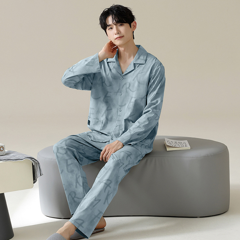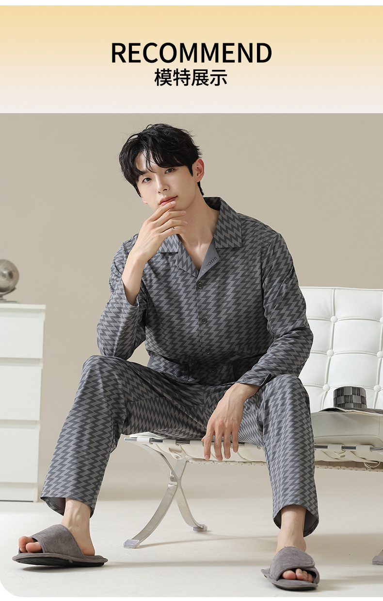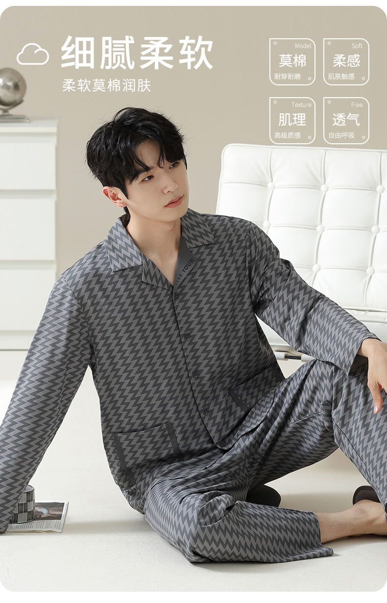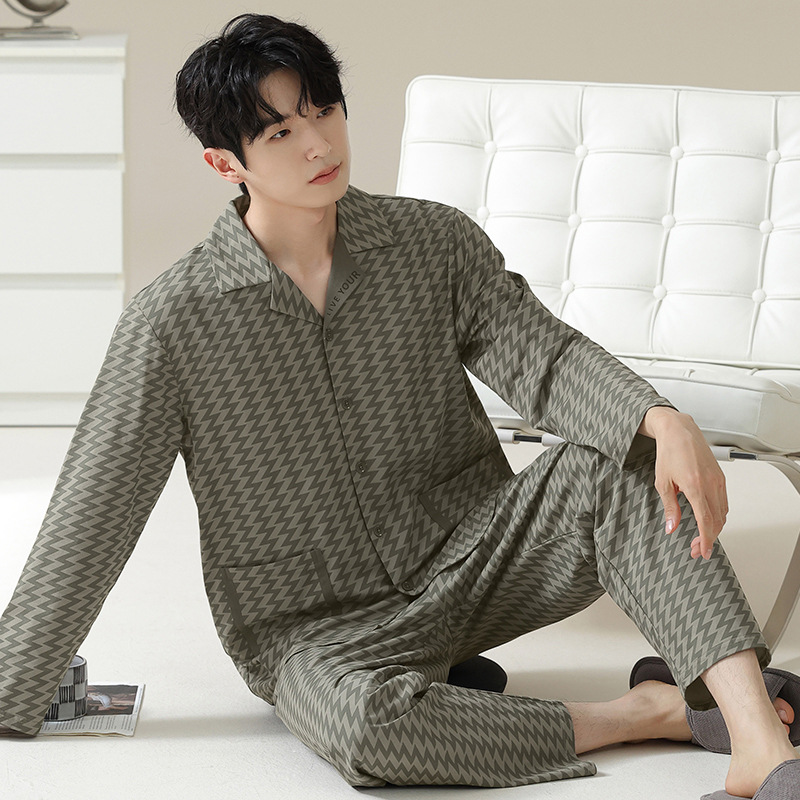 [Hyaluronic Acid] 2024 새로운 남성 잠옷 봄과 가을 모데일면 얇은 긴 소매 홈 옷 가을과 겨울 세트