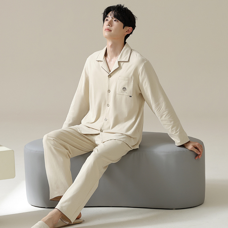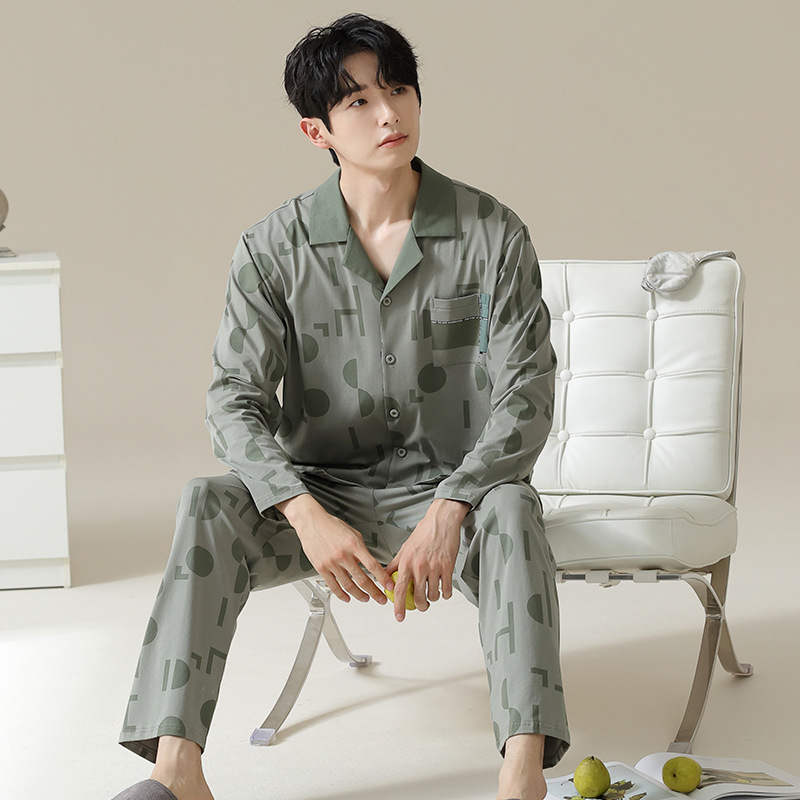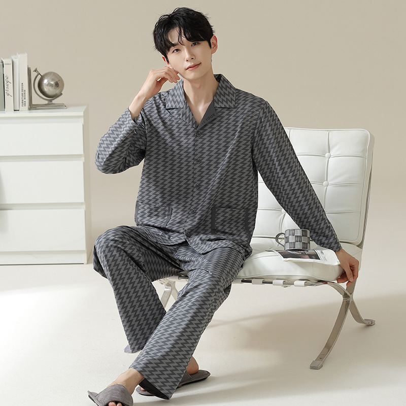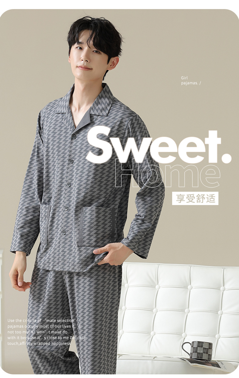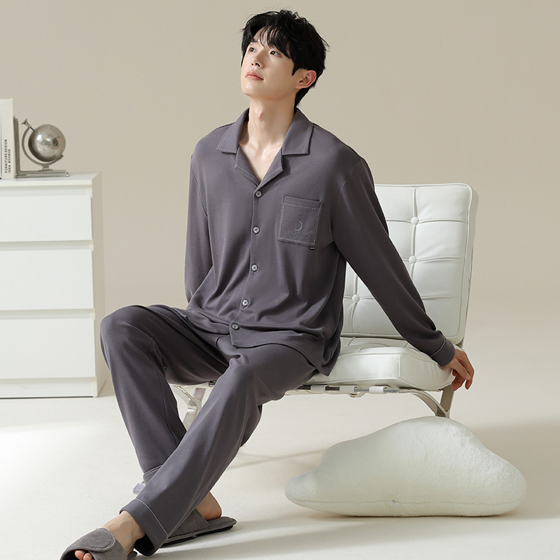 [Hyaluronic Acid] 2024 새로운 남성 잠옷 봄과 가을 모데일면 얇은 긴 소매 홈 옷 가을과 겨울 세트