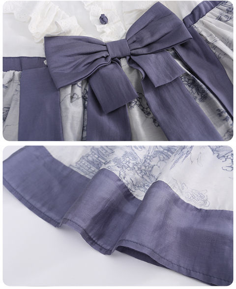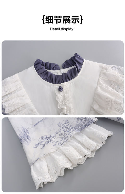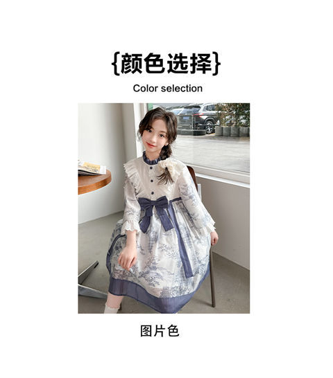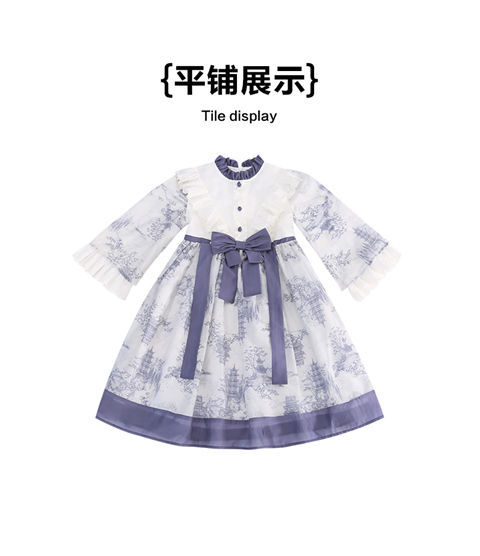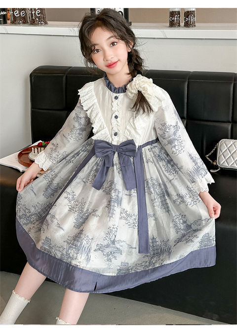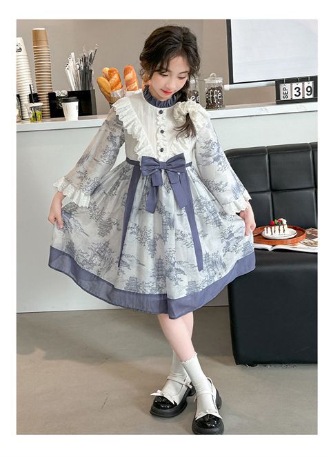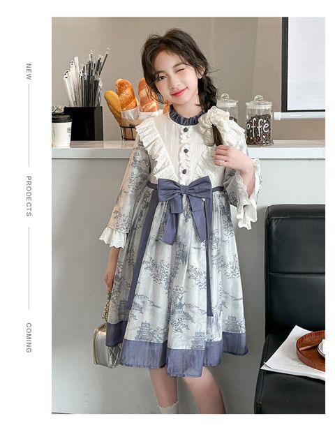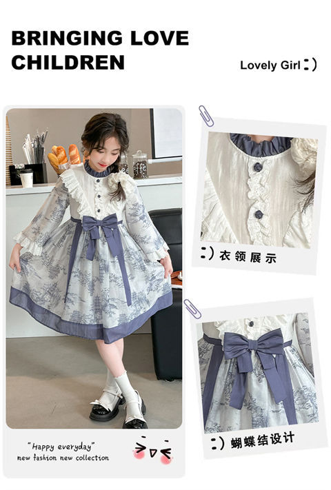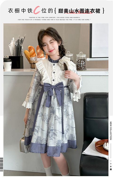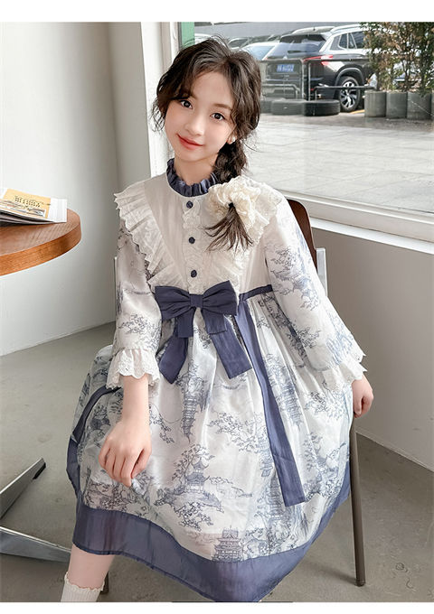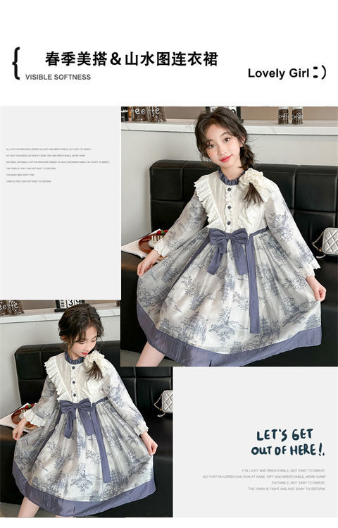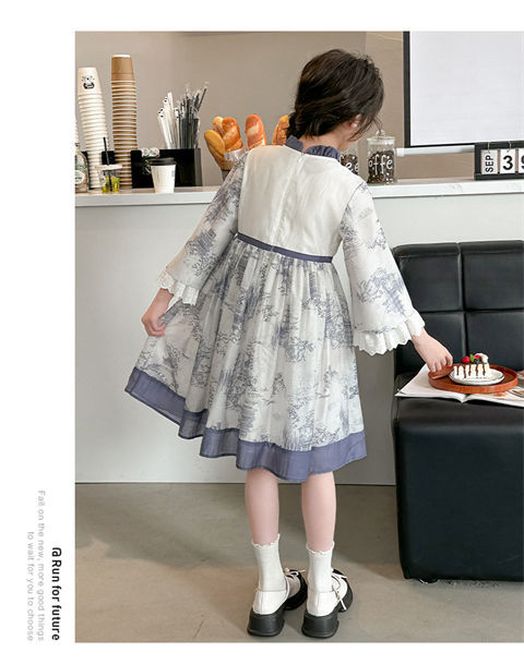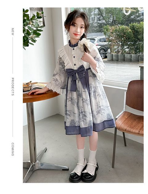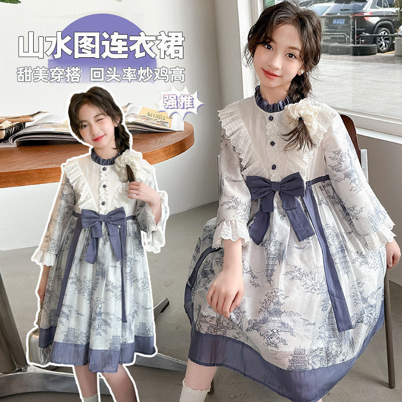 소녀 원피스 2024 봄 새로운 어린이 캐주얼 웨스턴 스타일 소녀 중국 스타일 레트로 잉크 스타일 원피스스토어 가기