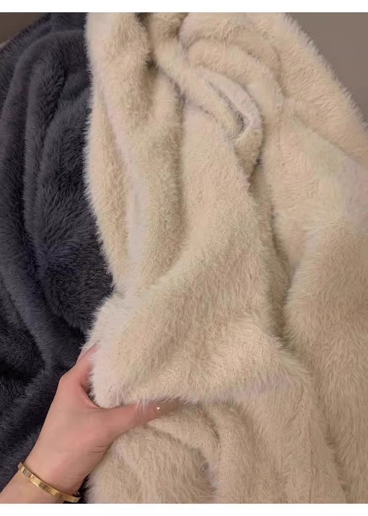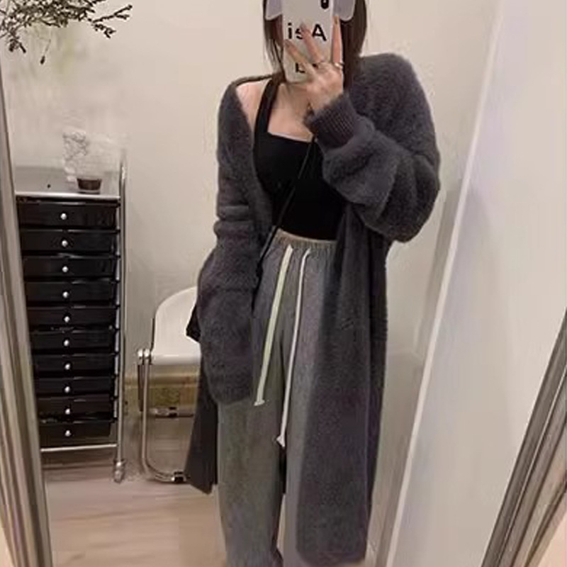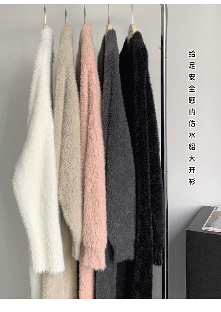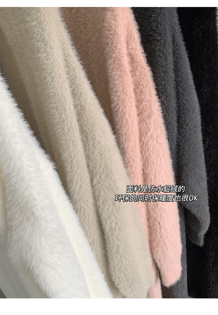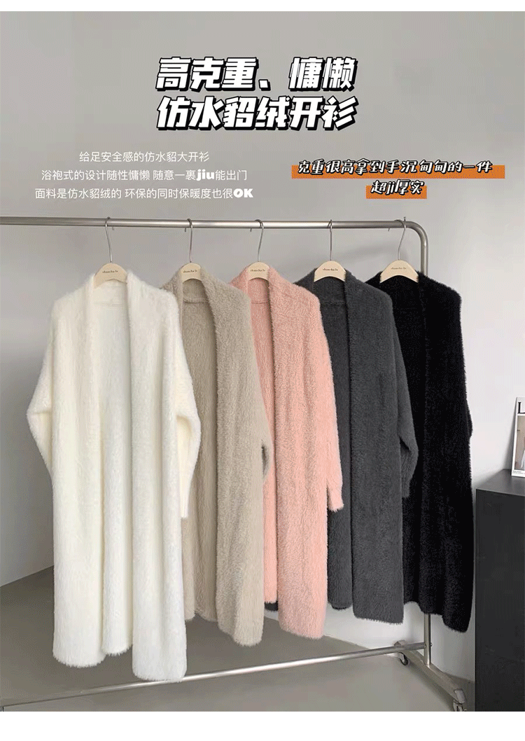 소프트 왁스 니트 카디건 스웨터 여성의 가을 및 겨울 새로운 느슨한 플러스 사이즈 슬리밍 게으른 스타일 모방 밍크 벨벳 롱 코트스토어 가기