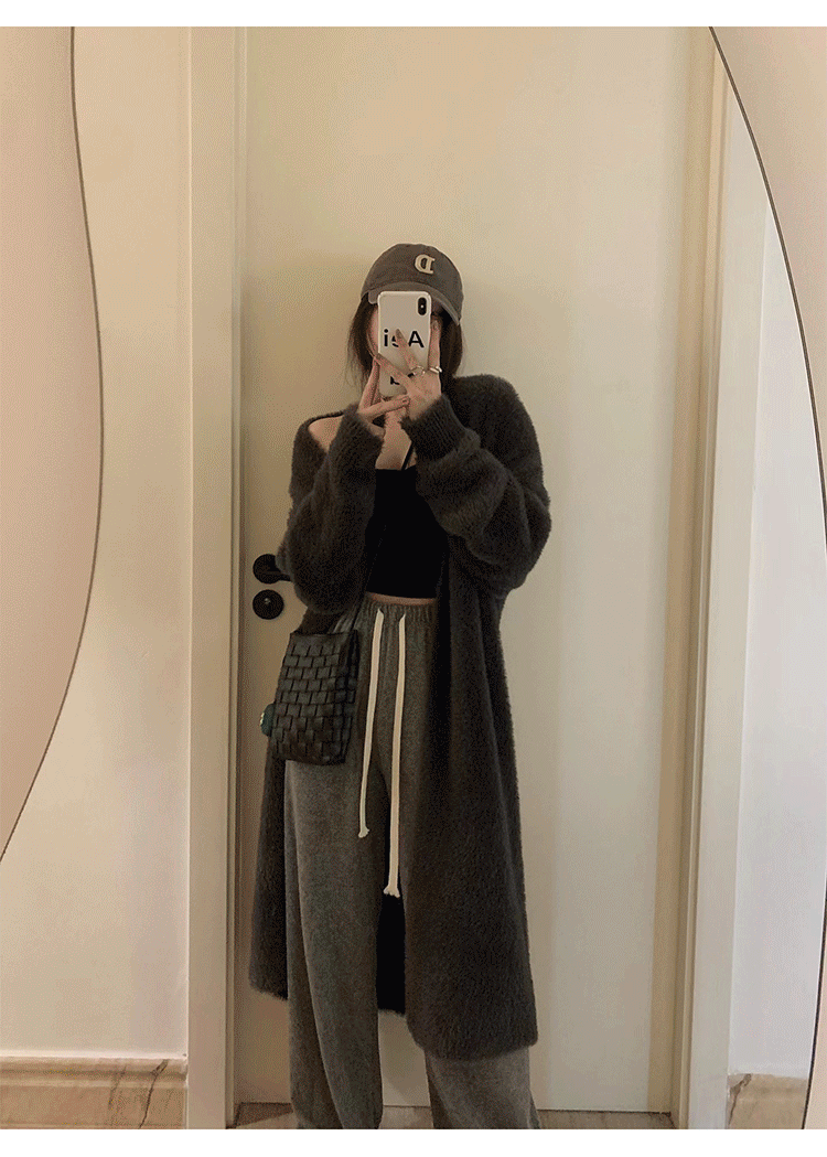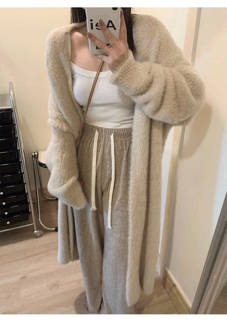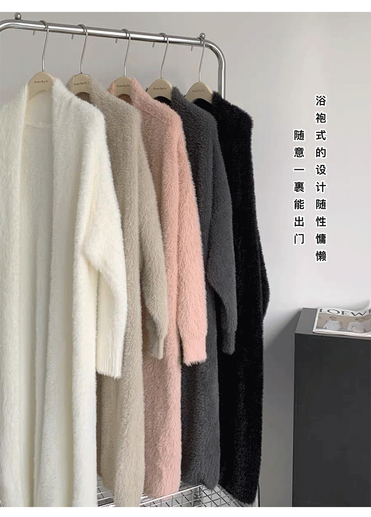 소프트 왁스 니트 카디건 스웨터 여성의 가을 및 겨울 새로운 느슨한 플러스 사이즈 슬리밍 게으른 스타일 모방 밍크 벨벳 롱 코트
