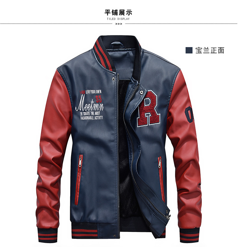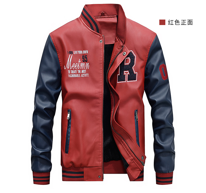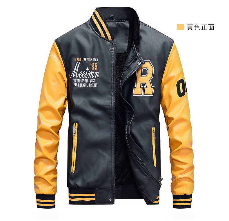 2024 봄과 가을 새로운 청소년 야구 유니폼 기모 PU 가죽 남성 오토바이 재킷 코트 공장 도매