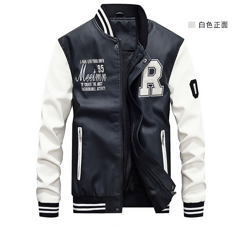 2024 봄과 가을 새로운 청소년 야구 유니폼 기모 PU 가죽 남성 오토바이 재킷 코트 공장 도매스토어 가기