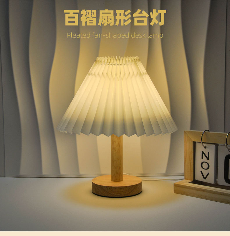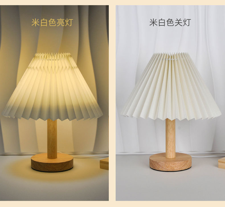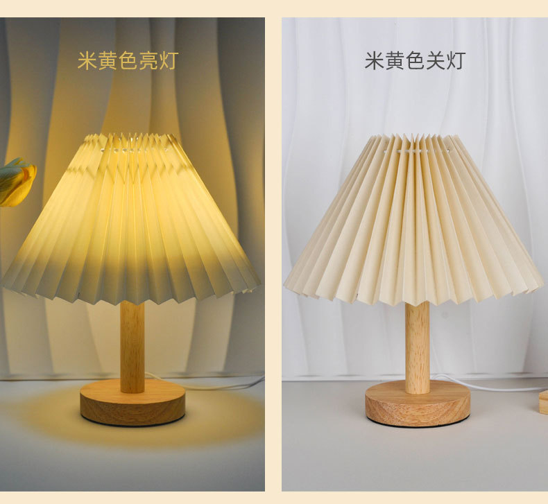 Ins Vintage 주름 원격 제어 나이트 라이트 북유럽 홈스테이 침실 장식 테이블 램프 우산 침대 옆 램프 창조적 인 선물