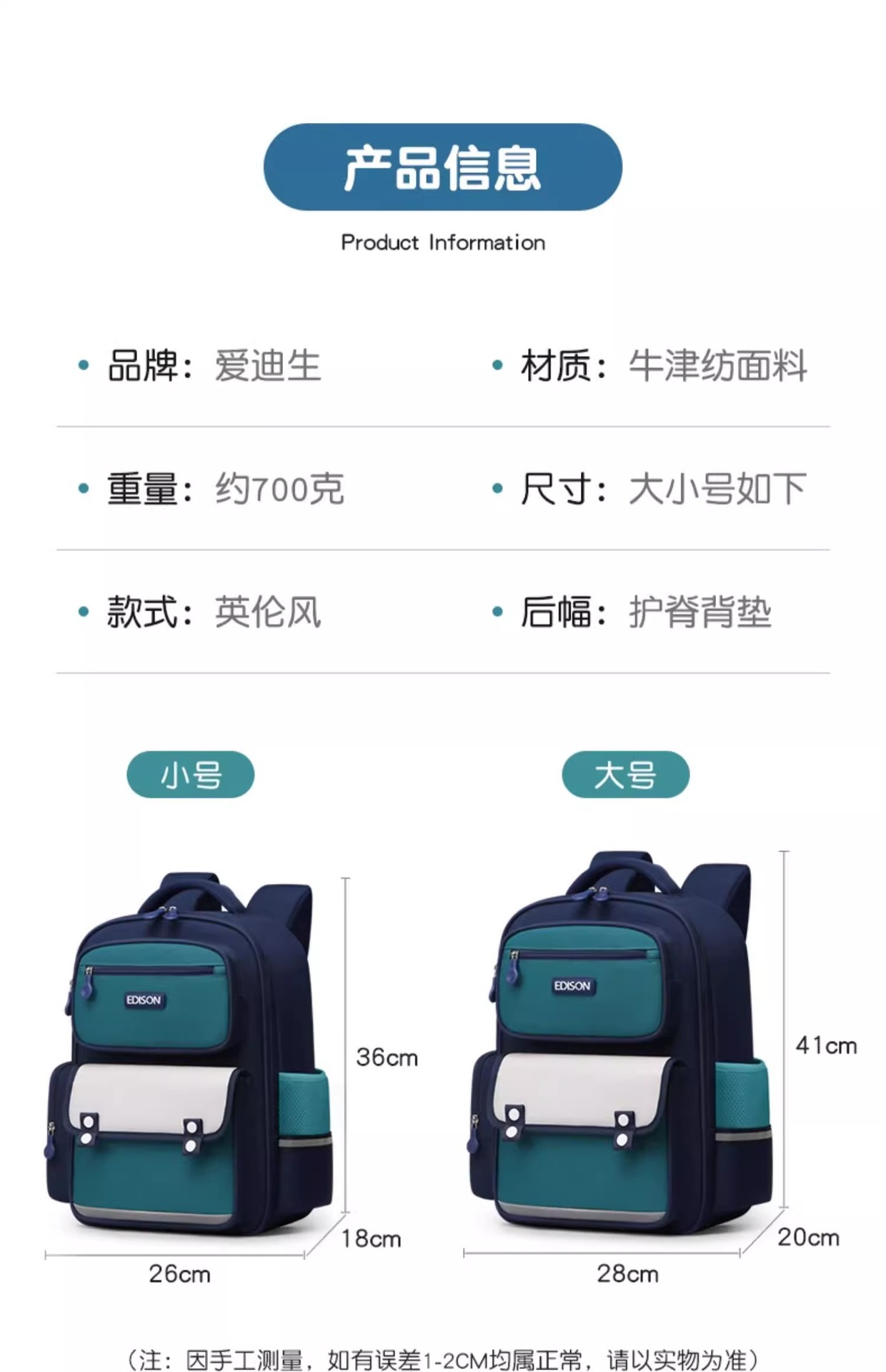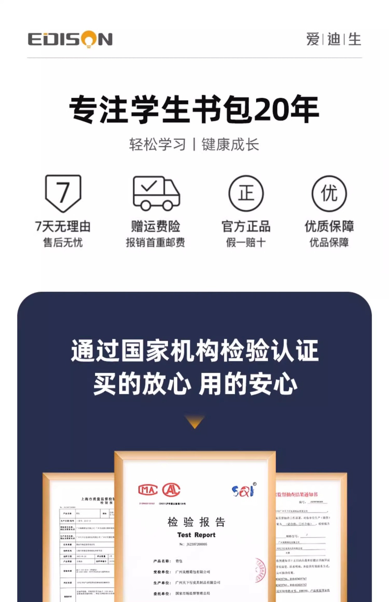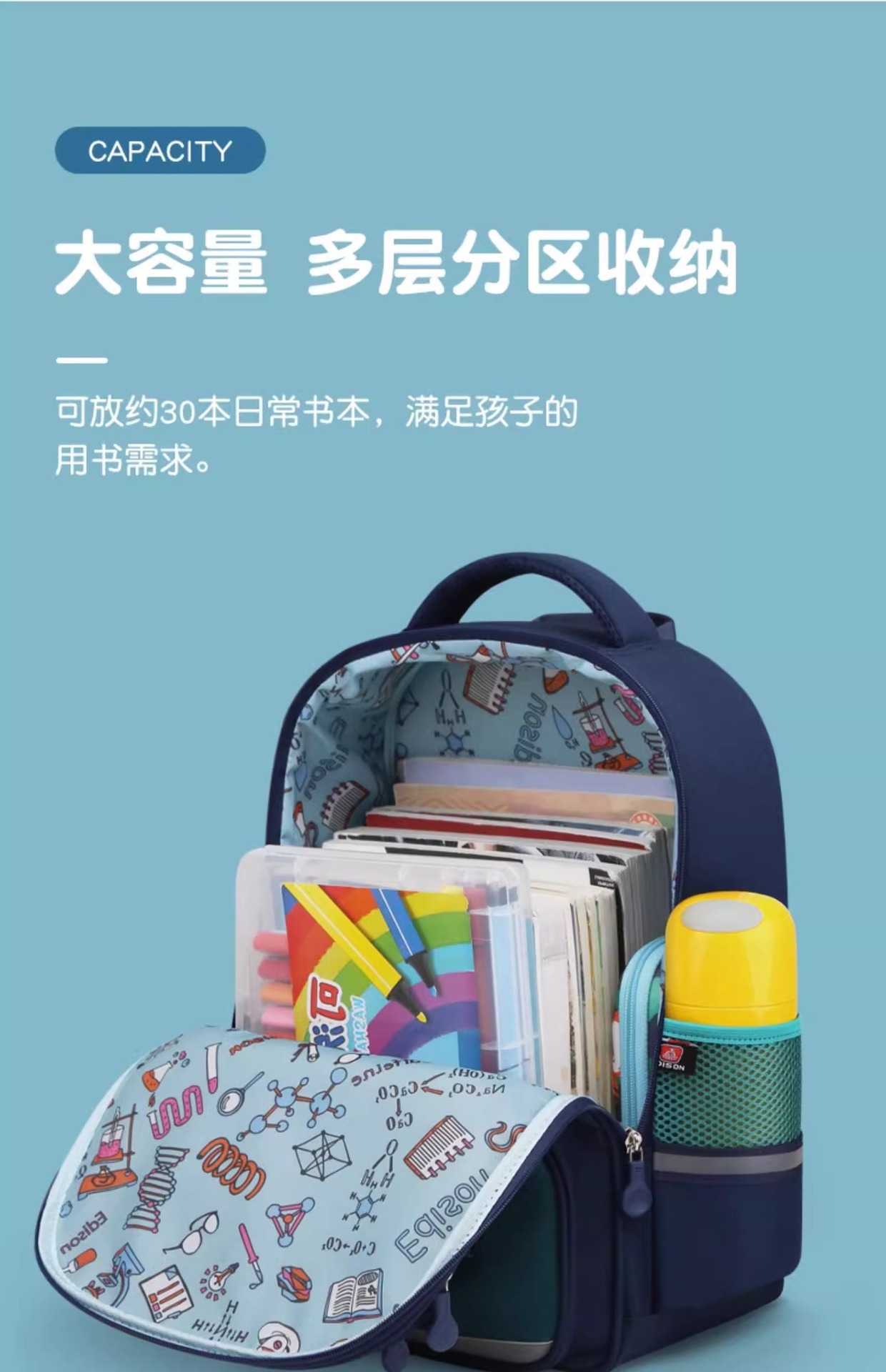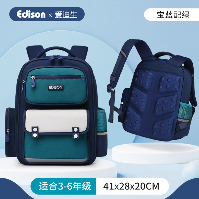 에디슨 어린이 책가방 초등학교 소년 새 소년 초경량 1, 3, 6 학년 소년 부담 감소 척추 보호 남성