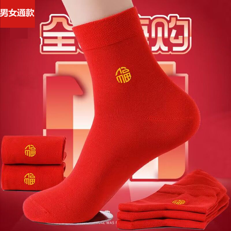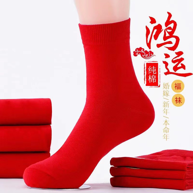 브닝 니언 레드 양말 남녀 코튼 양말 신부 웨딩 양말 중간 배럴 새해 가을과 겨울 큰 붉은 탈취제 포춘스토어 가기