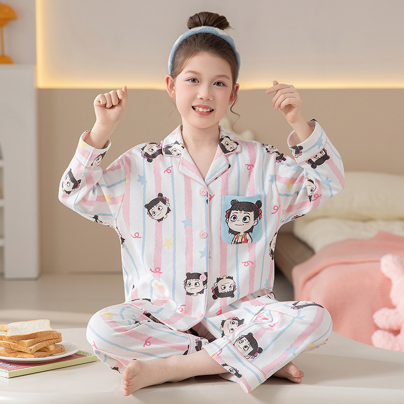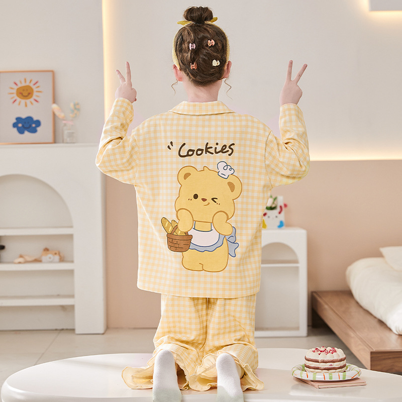 100% 면 소녀 잠옷 봄과 가을 긴 소매 면 새로운 Kulomi 어린이 어린 소녀의 집 옷 세트스토어 가기