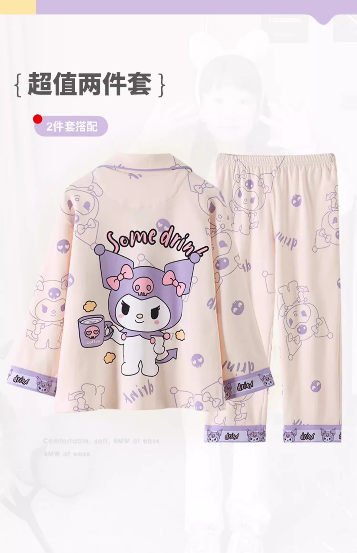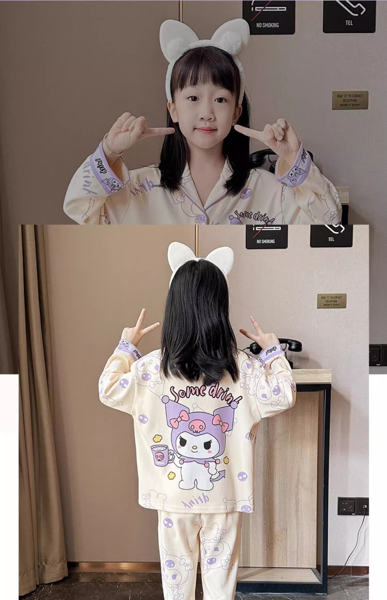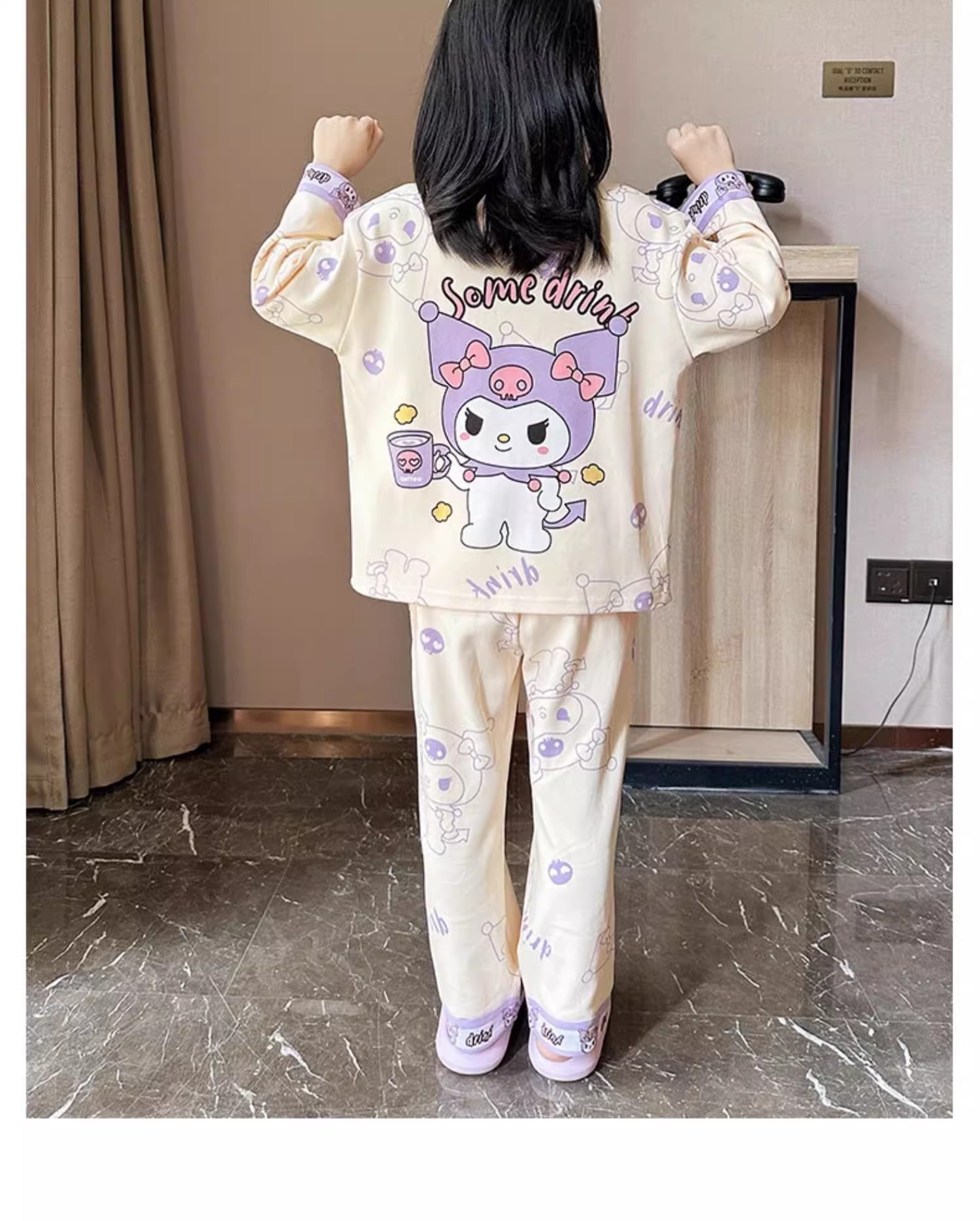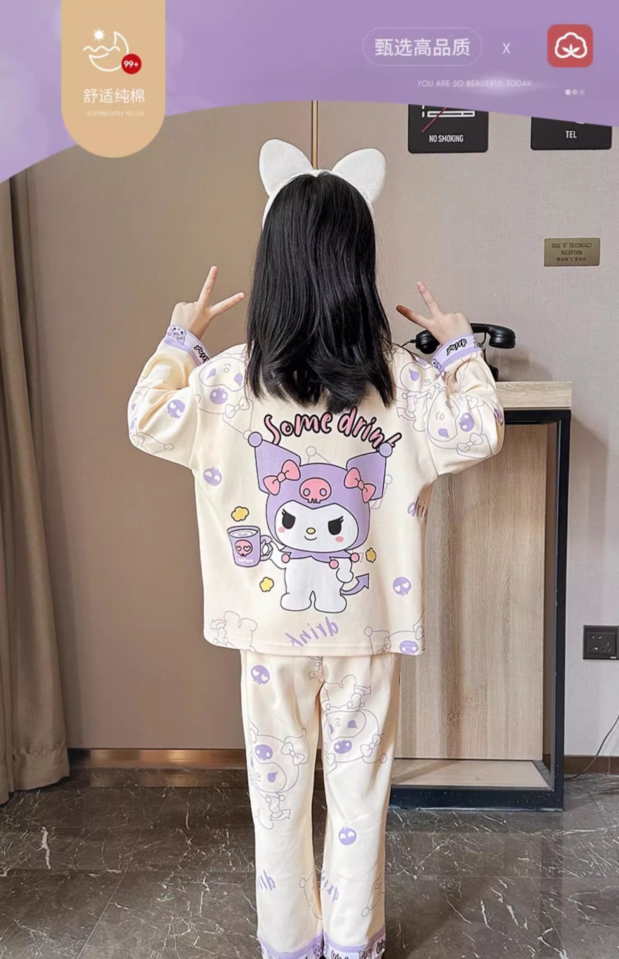 女童睡衣春秋季长袖棉2024新款库洛米儿童小女孩洋气家居服套装