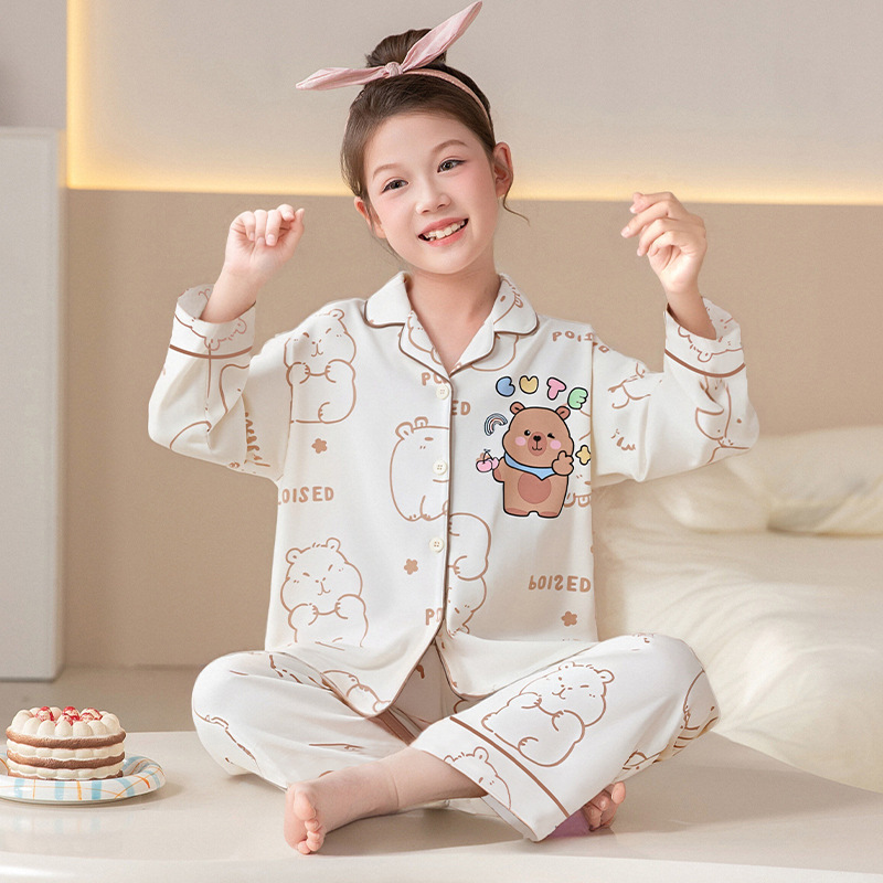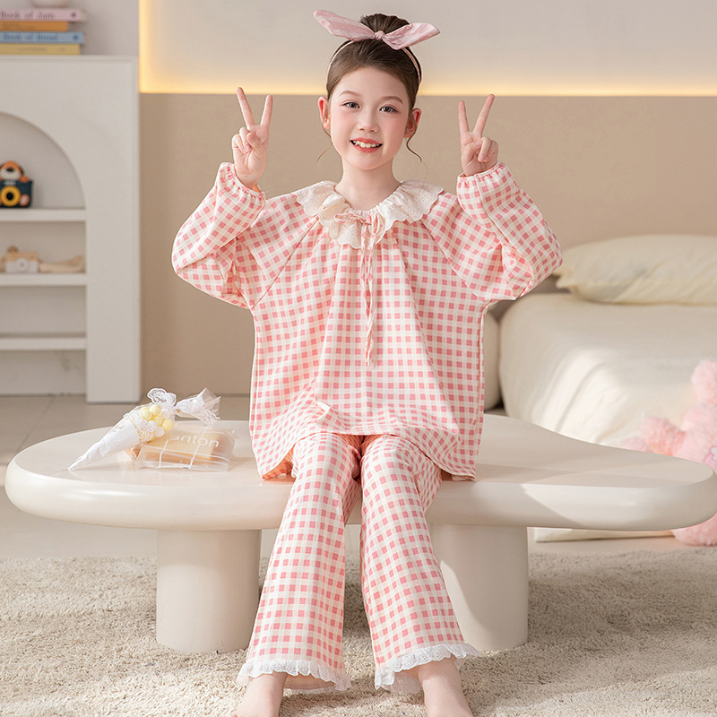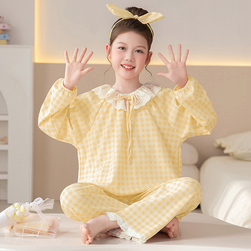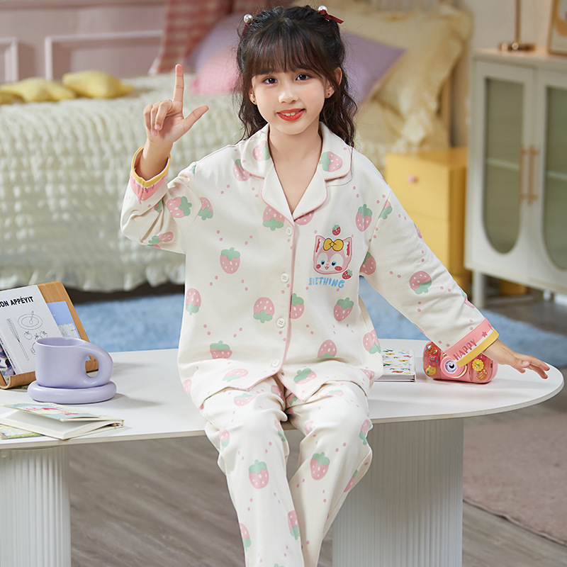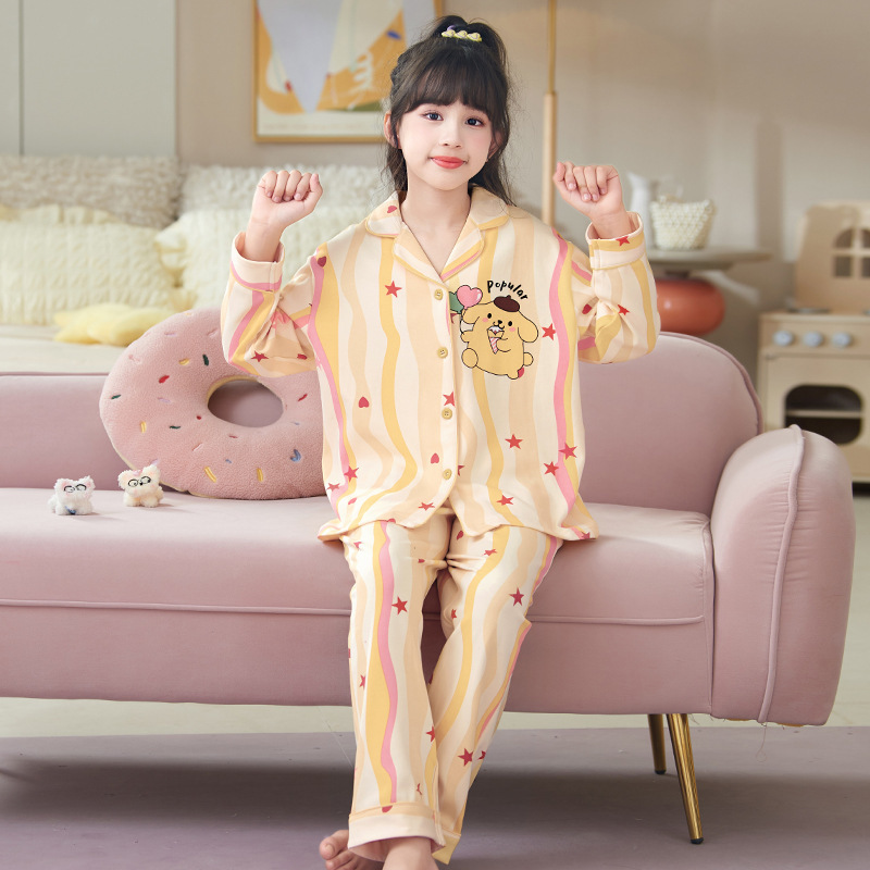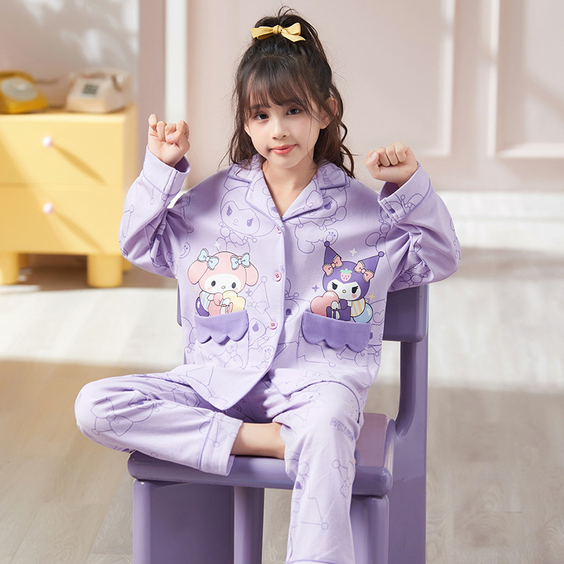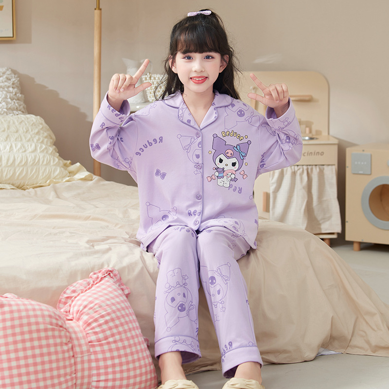 100% 면 소녀 잠옷 봄과 가을 긴 소매 면 새로운 Kulomi 어린이 어린 소녀의 집 옷 세트