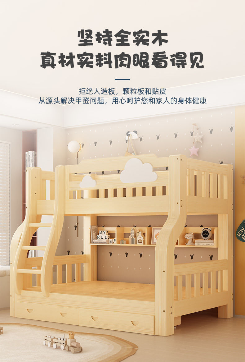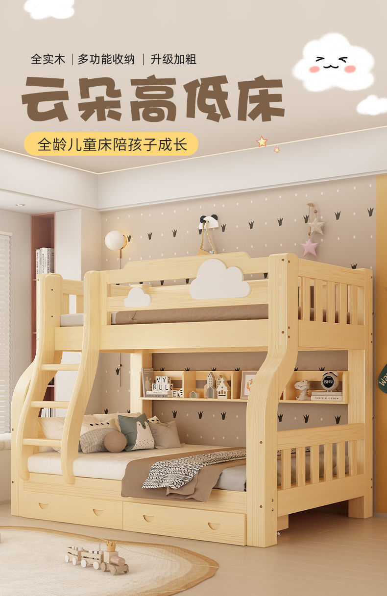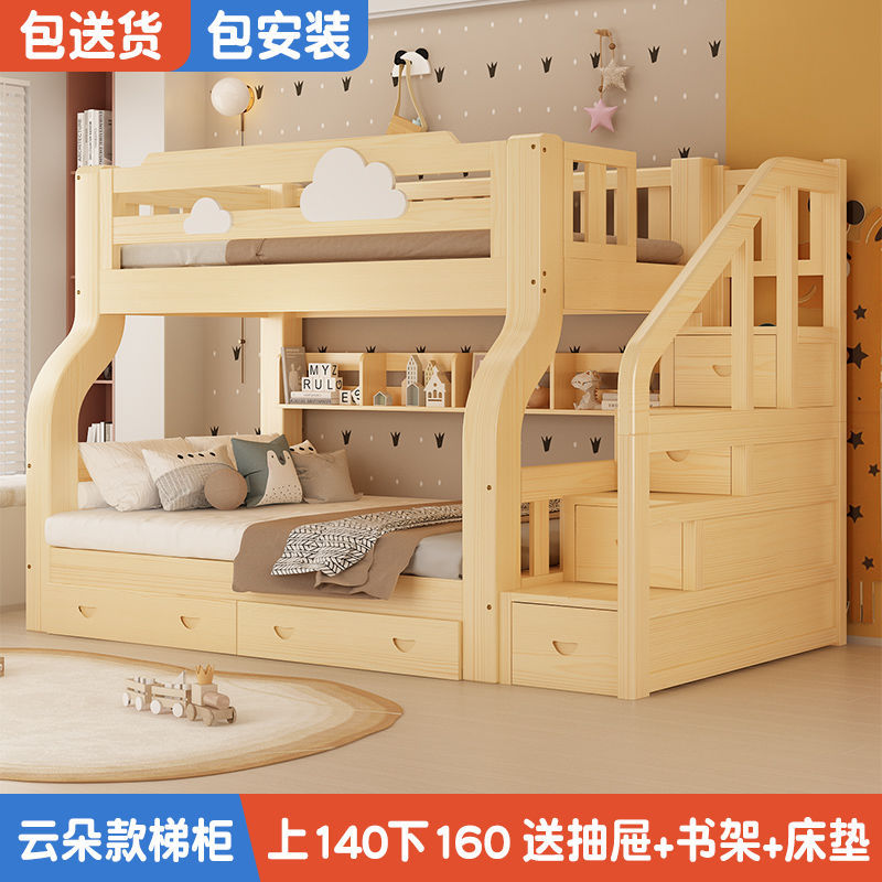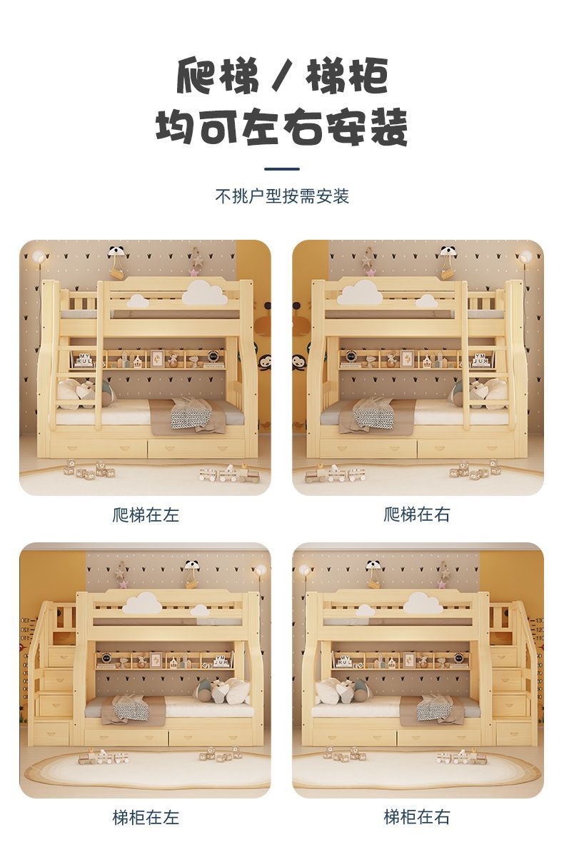 원목 이층침대, 어린이용 이층침대, 성인용 이층침대, 엄마와 아이 2층 높고 낮은 어린이침대, 이층침대, 나무침대