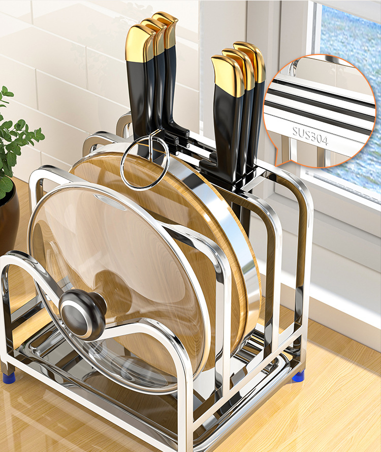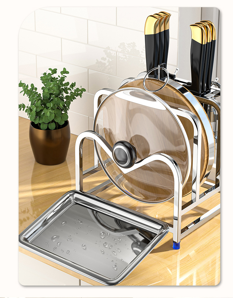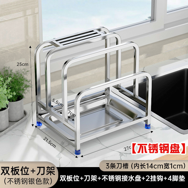 상업용 스테인레스 스틸 나이프 홀더 주방 다기능 스토리지 랙 강판 플라스틱 플레이트 커버 통합 도마 스토리지 랙