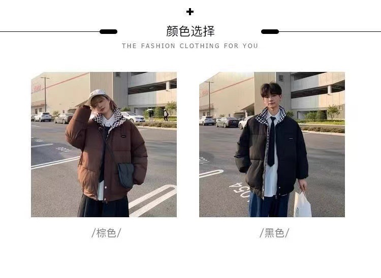 체크 보드 새로운 스타일 코튼 패딩 재킷 겨울 두꺼운 홍콩 스타일 코튼 패딩 재킷 학생 빵 느슨한 한국 스타일 디자인 센스 코튼 패딩 재킷
