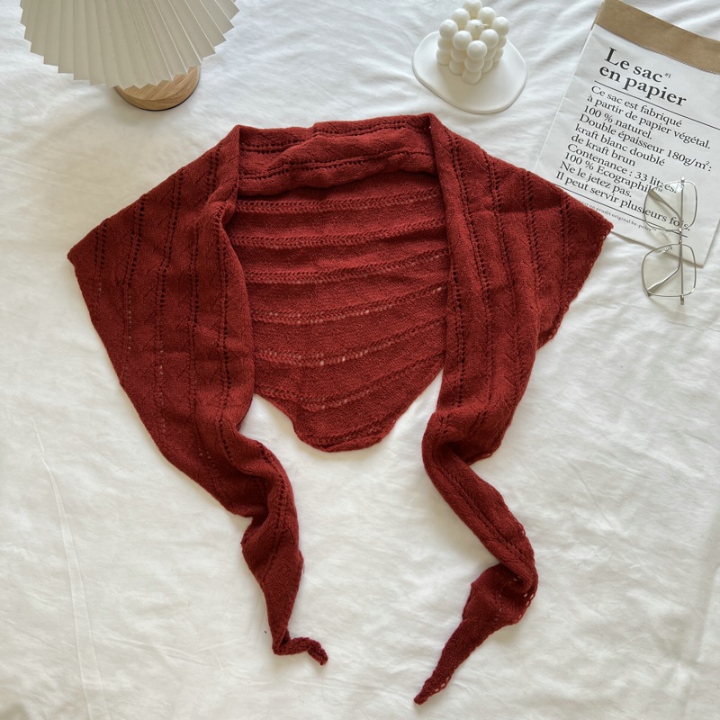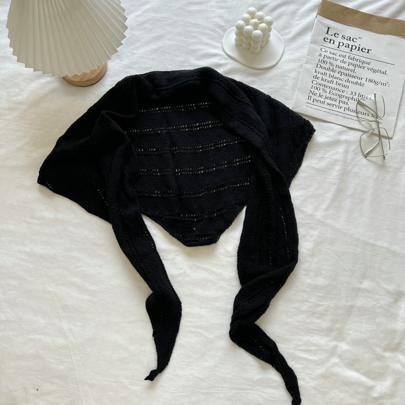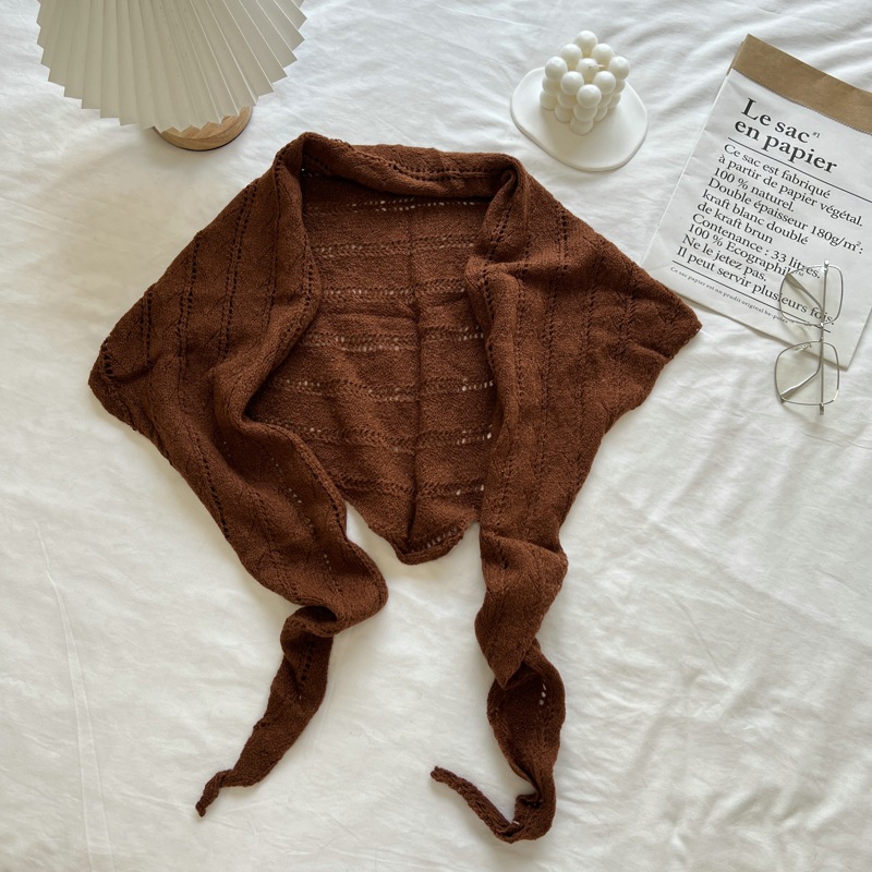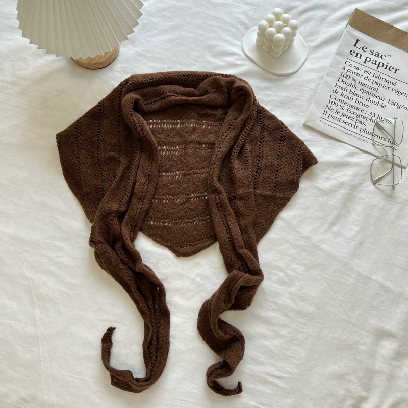 빈티지 할로우 니트 삼각형 스카프 매듭 목도리 여성용 가을과 겨울 외부 다기능 얇은 작은 스카프 따뜻한 스카프스토어 가기