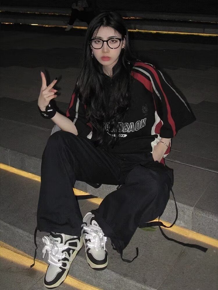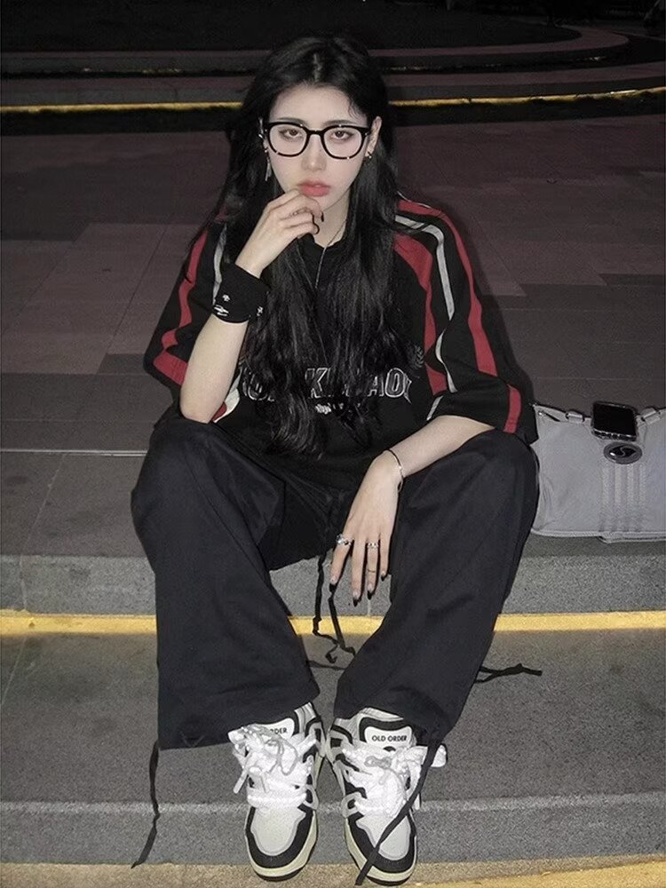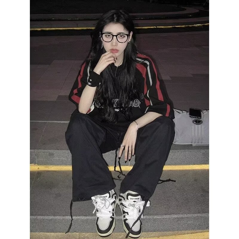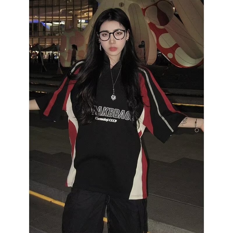 새로운 반소매 티셔츠 남성용 여름 아메리칸 스트리트 트렌디 컬러 대비 반소매 최고 느슨한 캐주얼 트렌디 브랜드 티셔츠스토어 가기