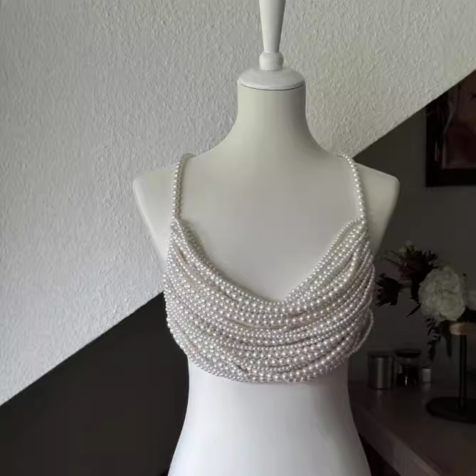 L4809Y 국경 2024 핫 셀러 다층 진주 수제 바느질 패션 절묘한 목 탑 작은 조끼스토어 가기