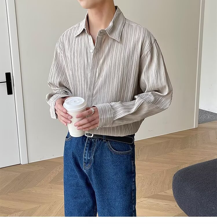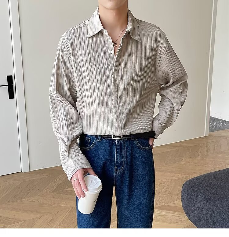 가벼운 럭셔리 긴팔 셔츠 남성용 고급 한국식 느슨한 가을 유행 INS 푹신한 잘 생긴 캐주얼 라이트 성숙한 다림질 셔츠