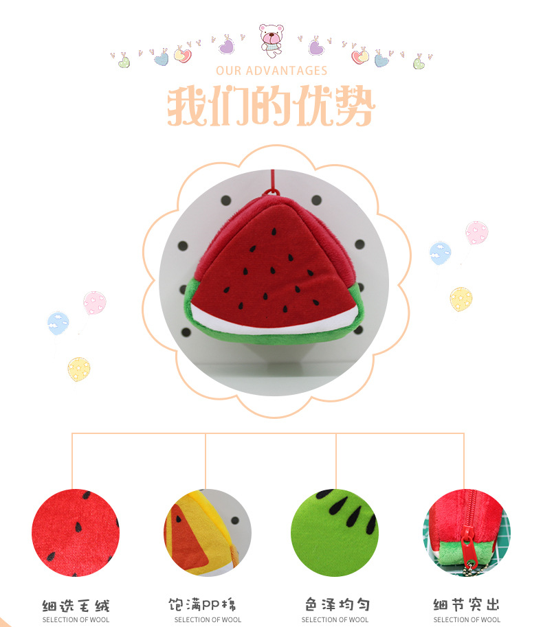 과일 모양 삼각형 동전 지갑 열쇠 가방 장식품 어린이 명절 선물 플러시 만화 지퍼 가방스토어 가기