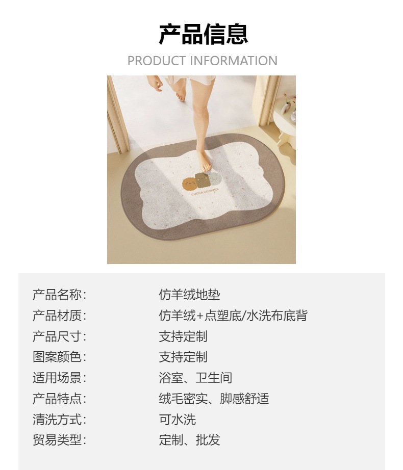 작은 신선한 욕실 바닥 매트 국경 도매 두꺼운 캐시미어 발 매트 흡수성 얼룩 방지 욕실 도어 매트 풋 매트스토어 가기