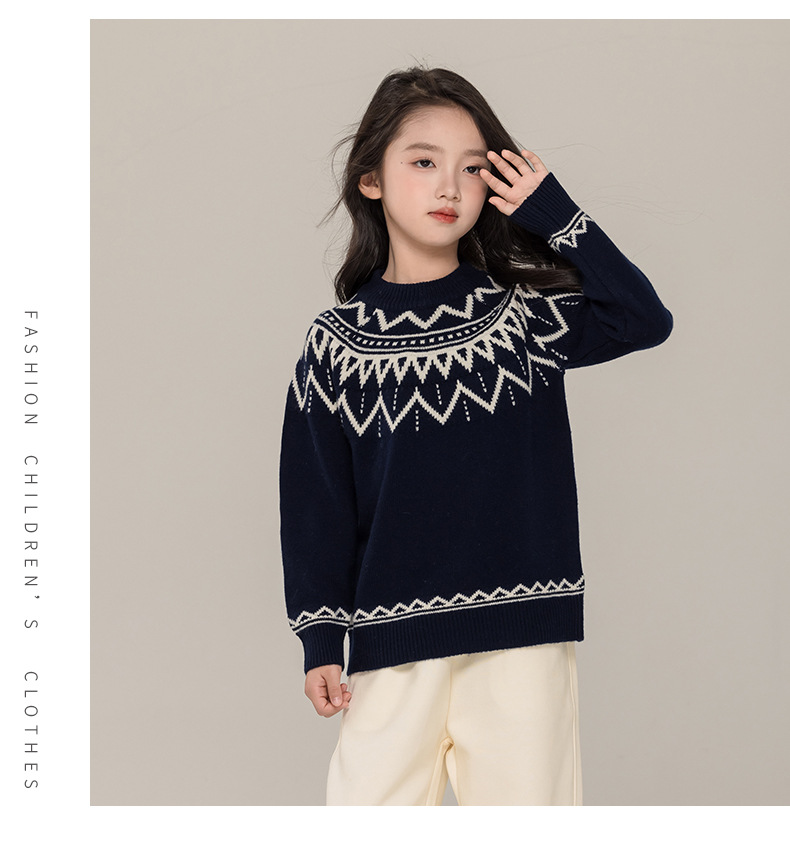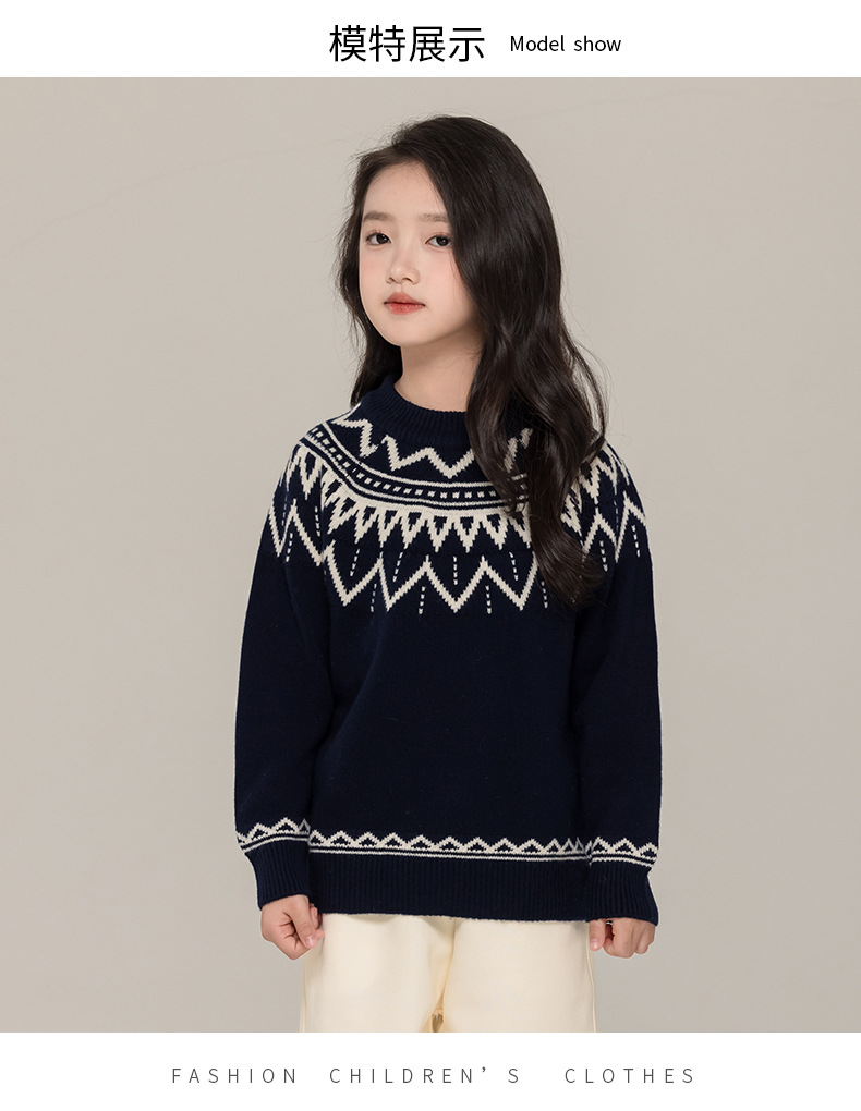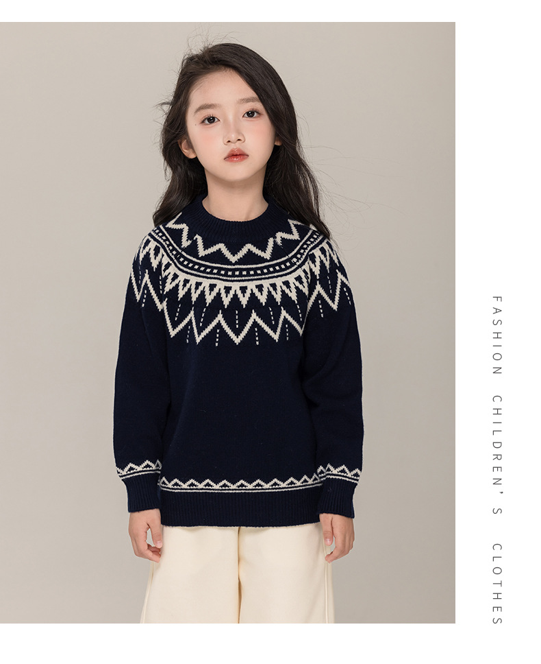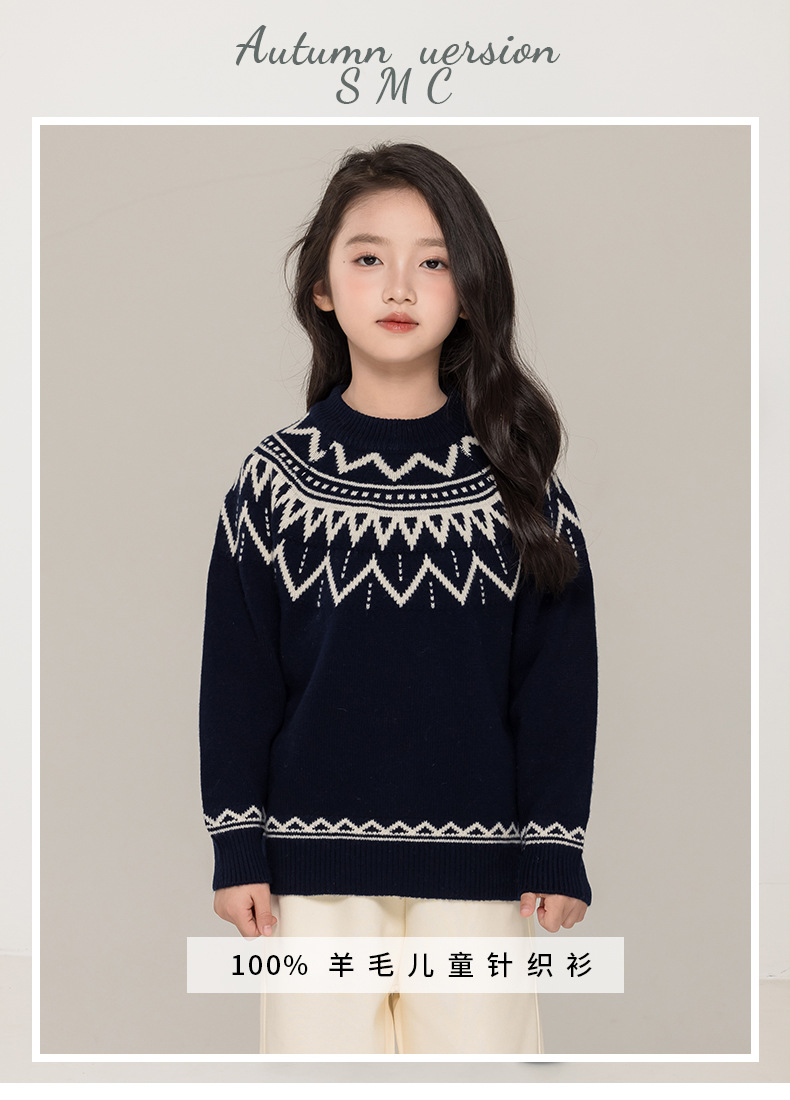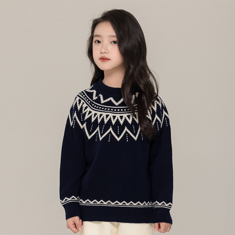 푸위안 아동복 100 어린이 스웨터 크루 넥 풀오버 남성과 여성의 캐시미어 스웨터 빈티지 스웨터 니트 베이스 셔츠