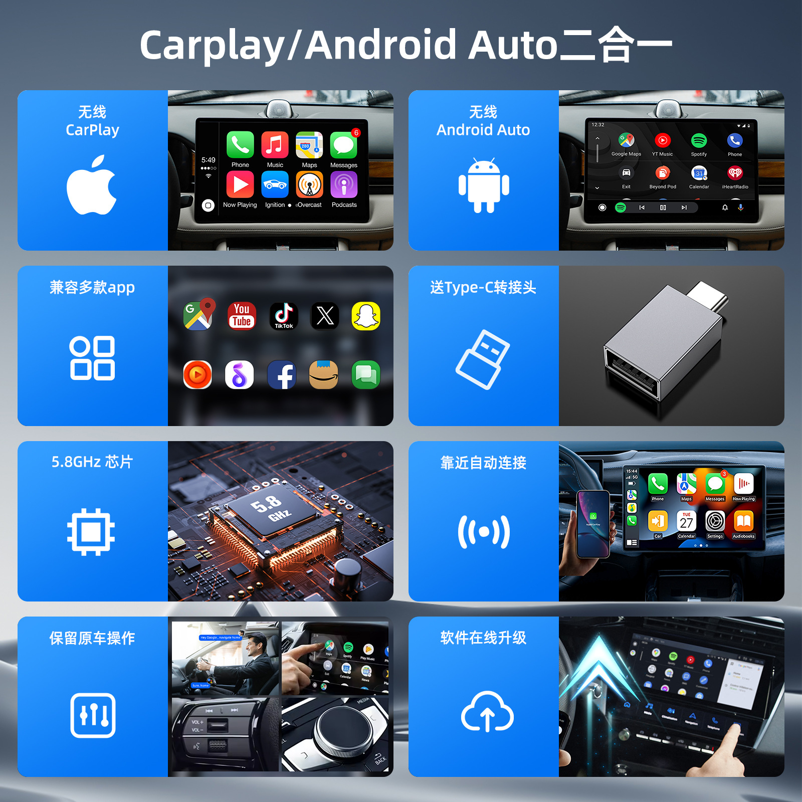 무선 박스 휴대 전화 스크린 자동차 어댑터 음성 스마트 박스에 유선 된 2 대 1 오리지널 자동차스토어 가기