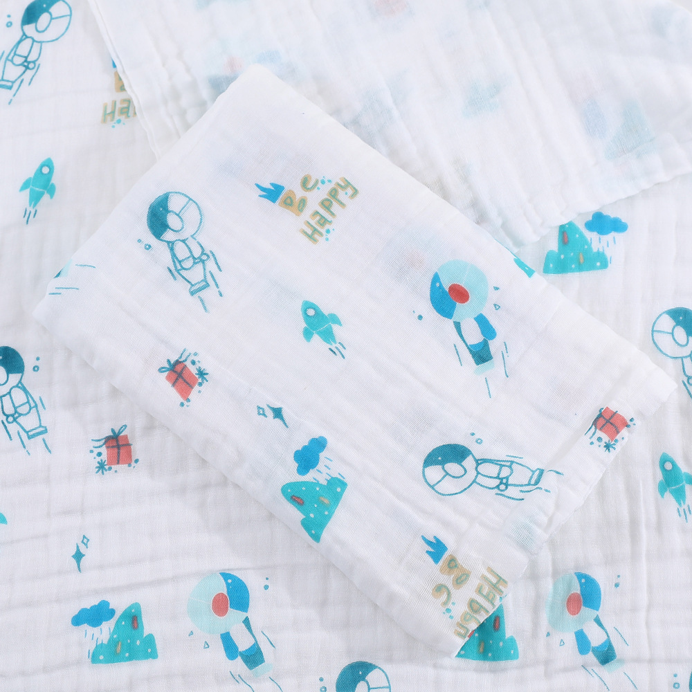 어린이 거즈 만화 목욕 타월 4 층 거즈 커버 담요 아기와 유아의 인쇄 포장 타월 Swaddling Towel 신생아 어린이 Quat