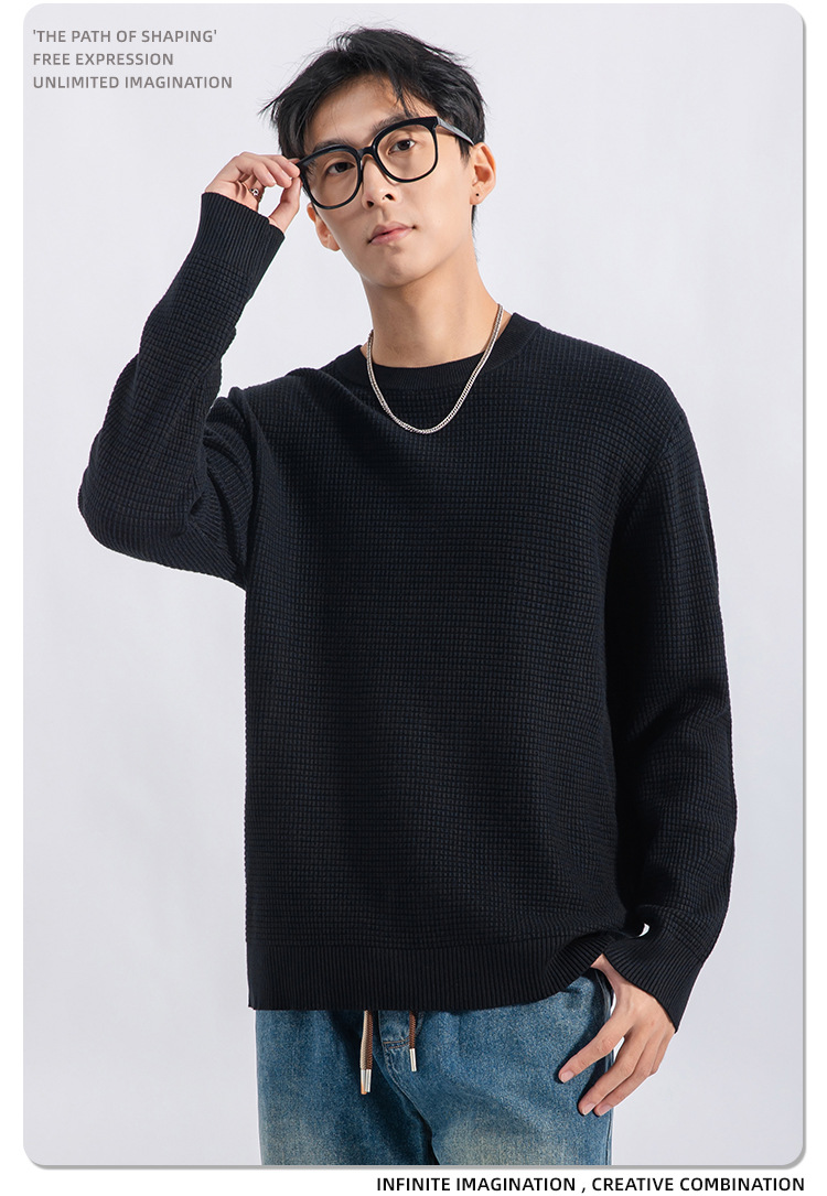 남성용 가을 겨울 라운드넥 스웨터, 남성용 트렌디 긴팔 루즈핏 캐주얼 니트웨어