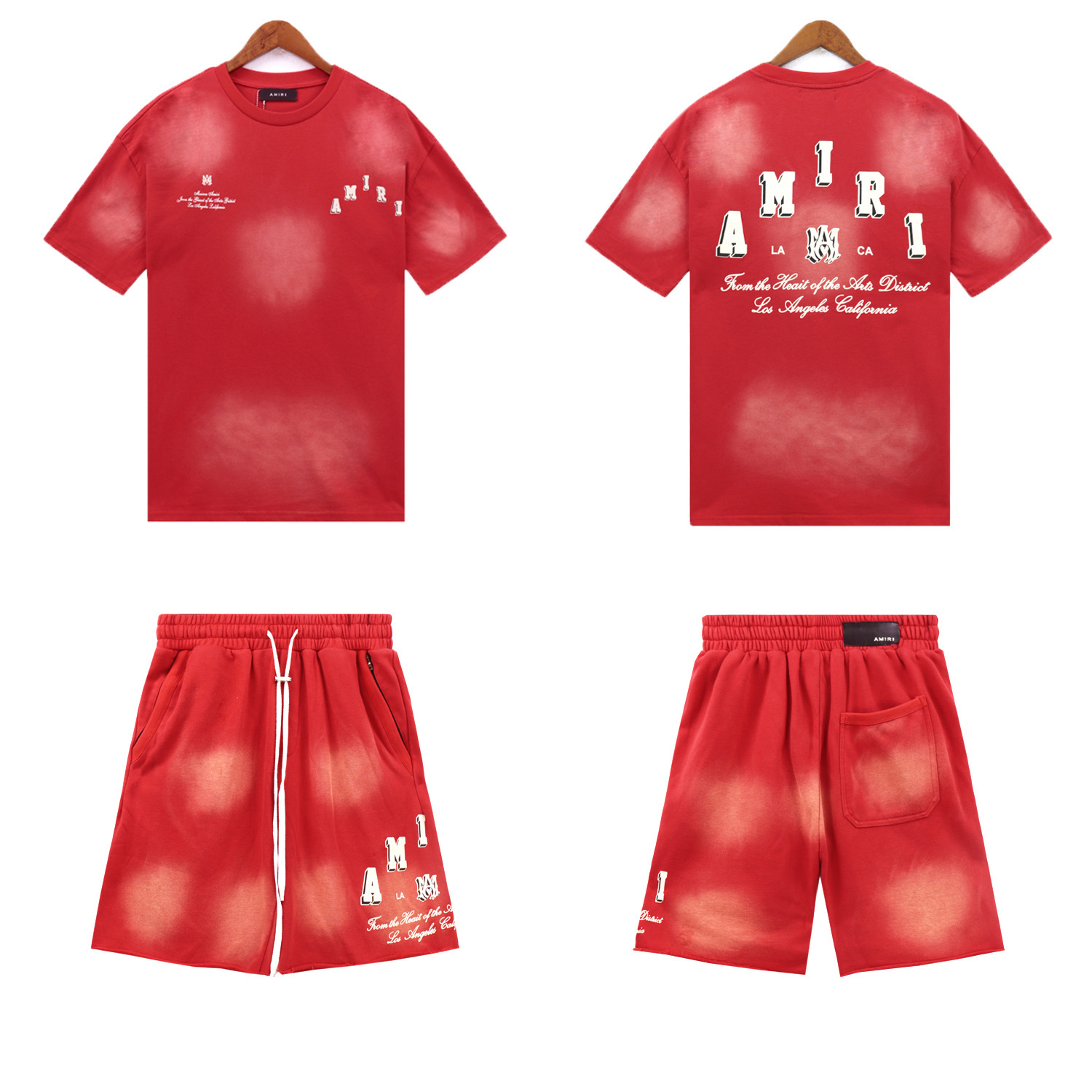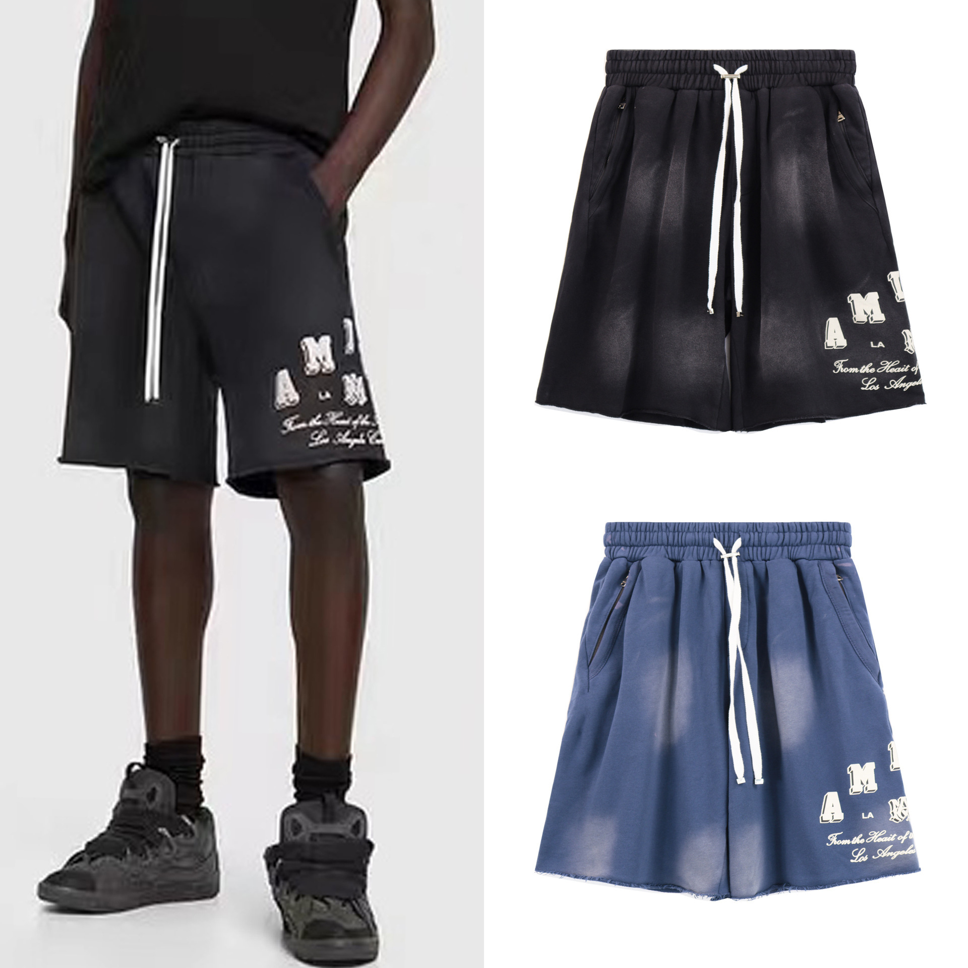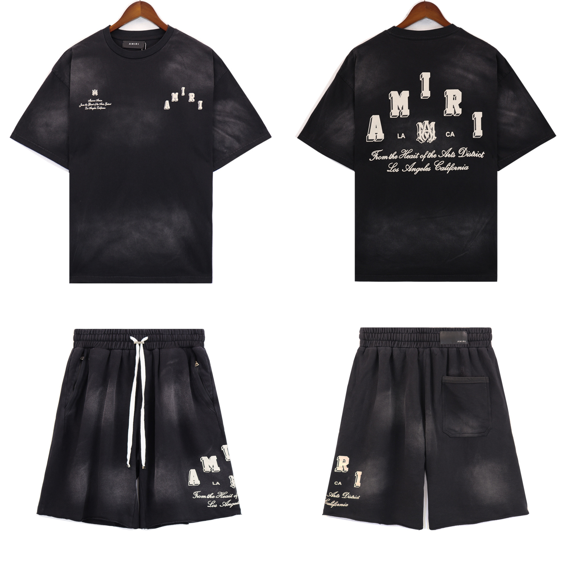 트렌디한 반바지와 레터 프린트 워싱 블랙 블루 반바지 티셔츠 남성 여름 세트스토어 가기