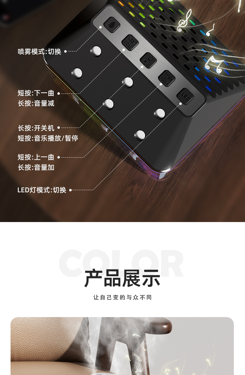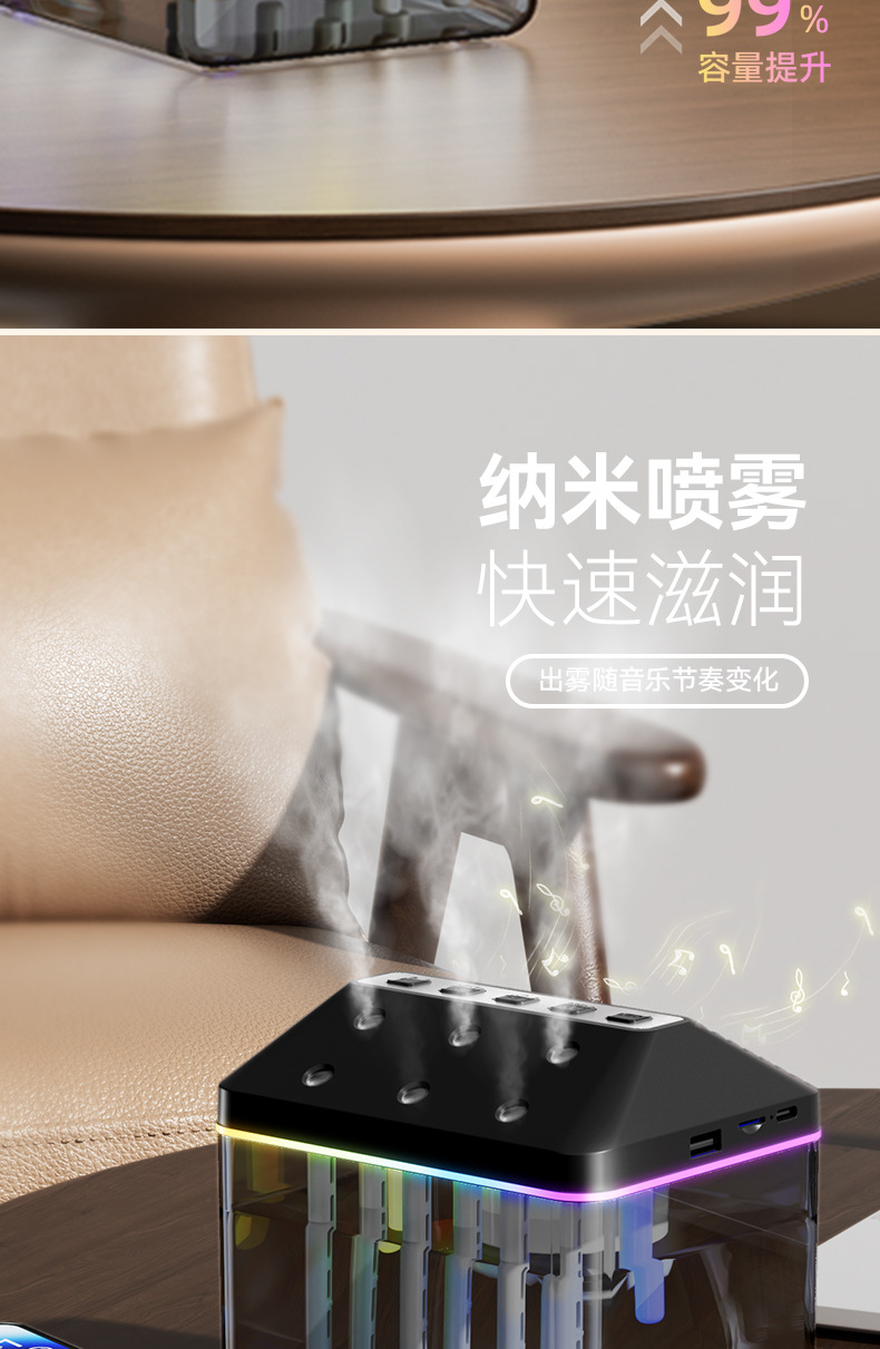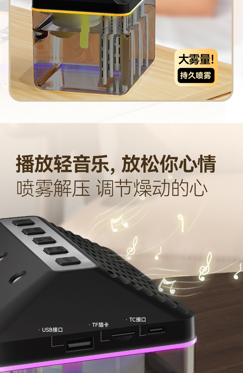 새로운 블루투스 스피커 가습기 홈 실내 제습기 작은 블루투스 스피커 다채로운 조명 효과 블루투스 스피커스토어 가기