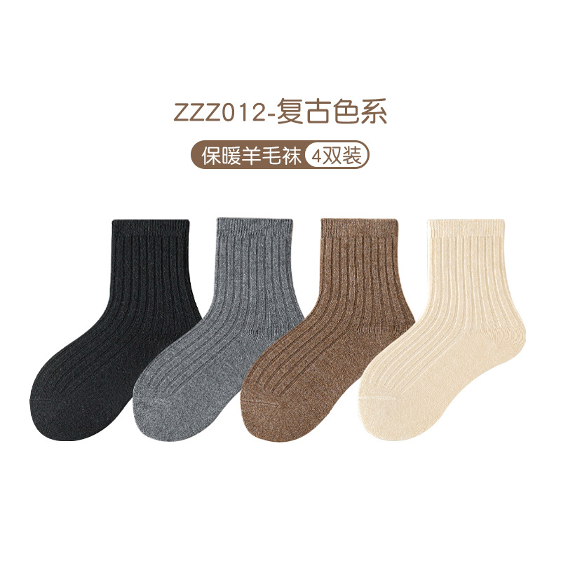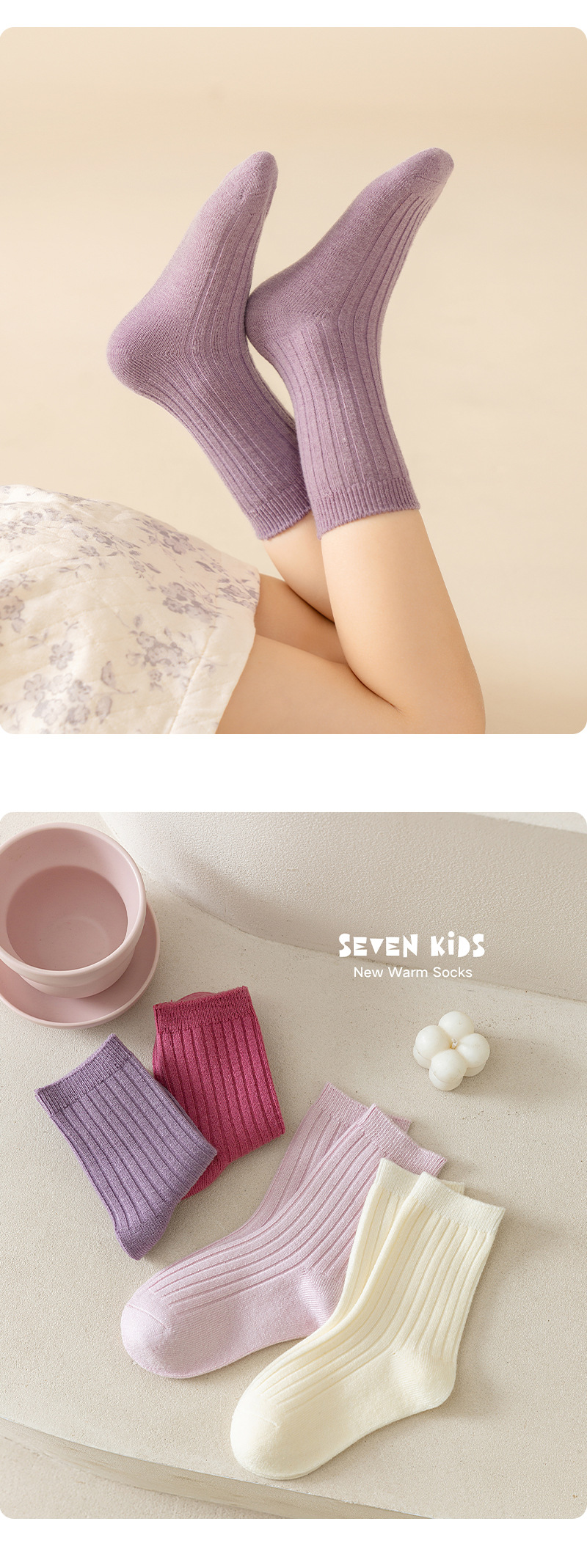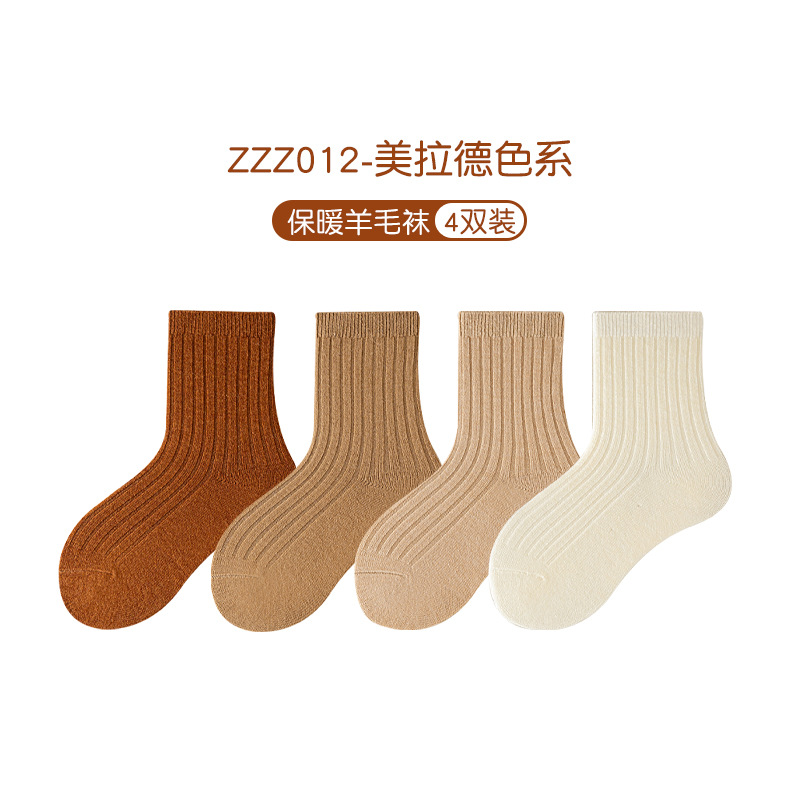 어린이 양말 2024 가을 겨울 새 소년과 소녀 양모 양말 솔리드 컬러 올 매치 어린이 4 쌍 핀 양말스토어 가기