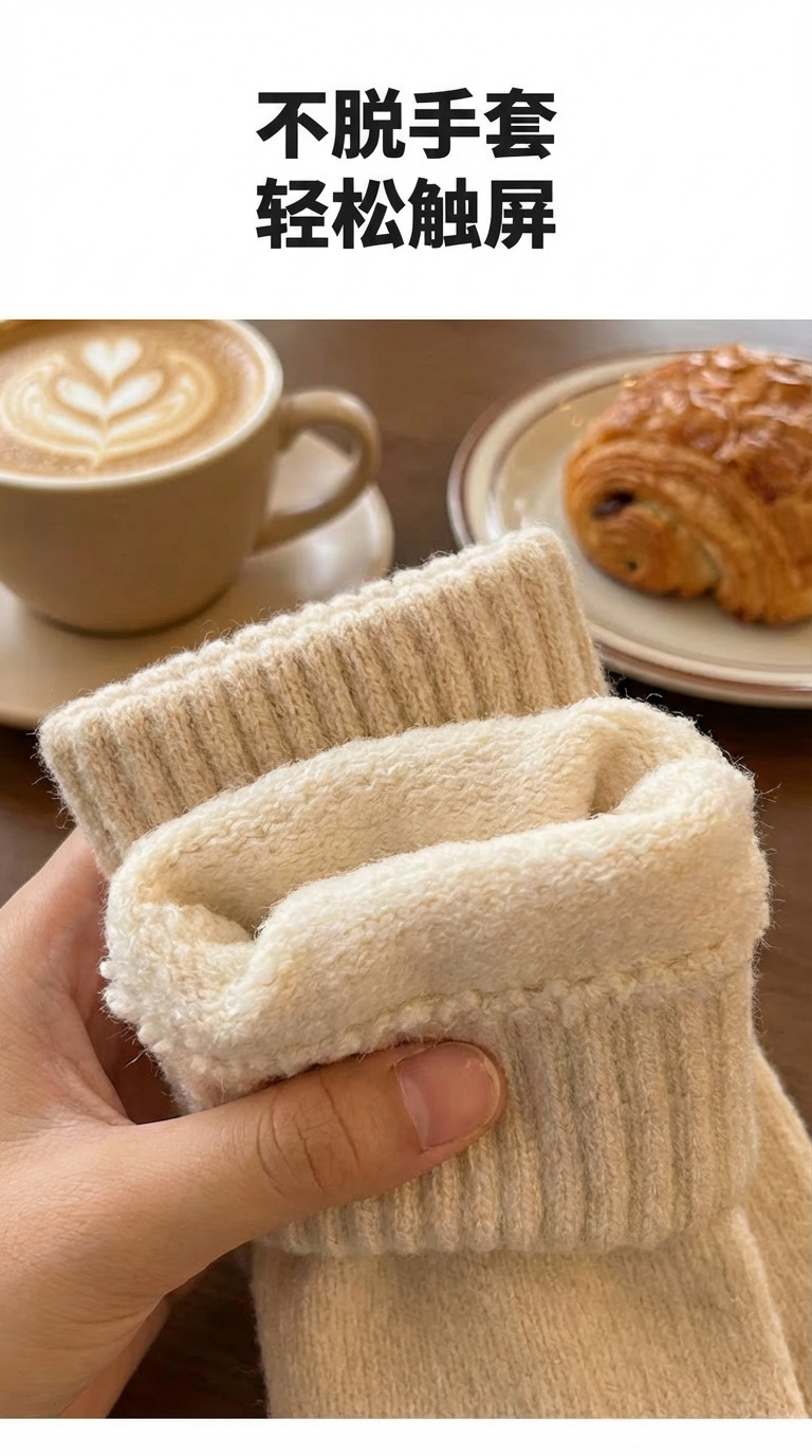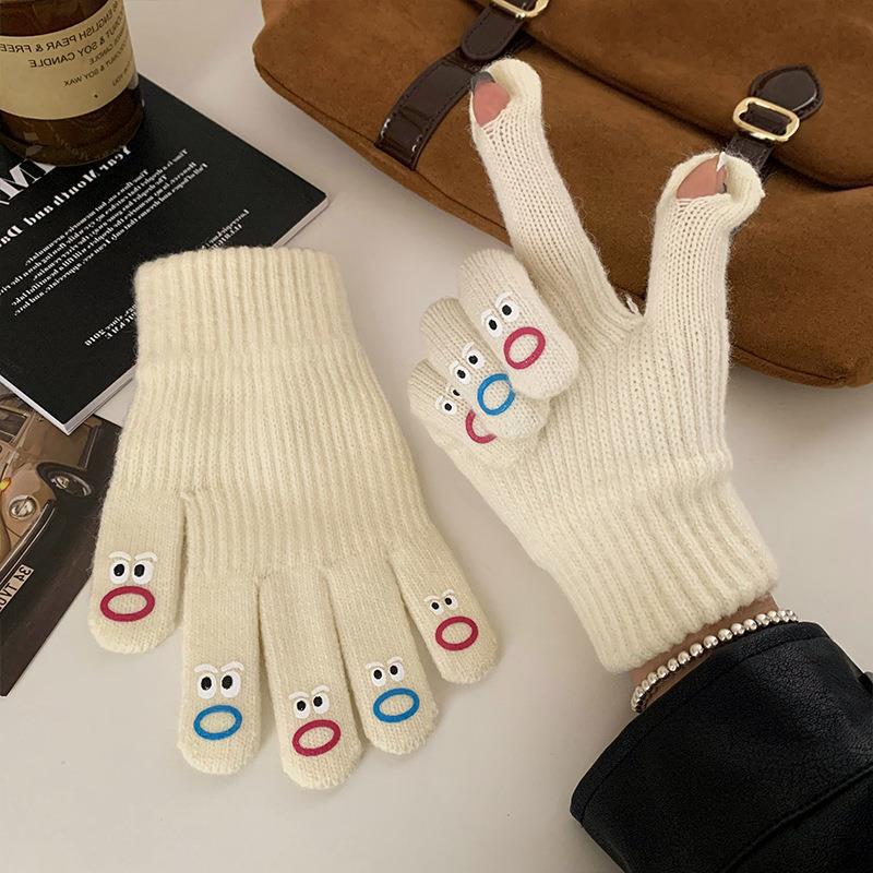 터치스크린 장갑 여성용 겨울 니트 모직 장갑 사이클링 방한 분리형 손가락 두꺼운 귀여운 표정 한국 스타일스토어 가기