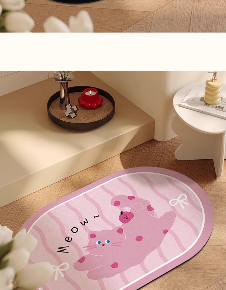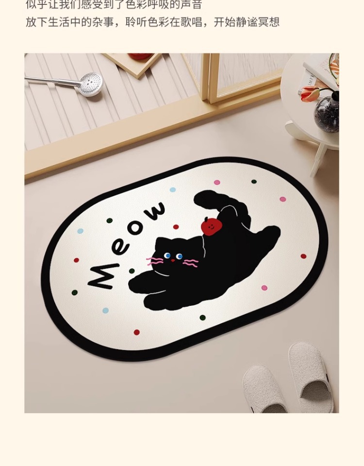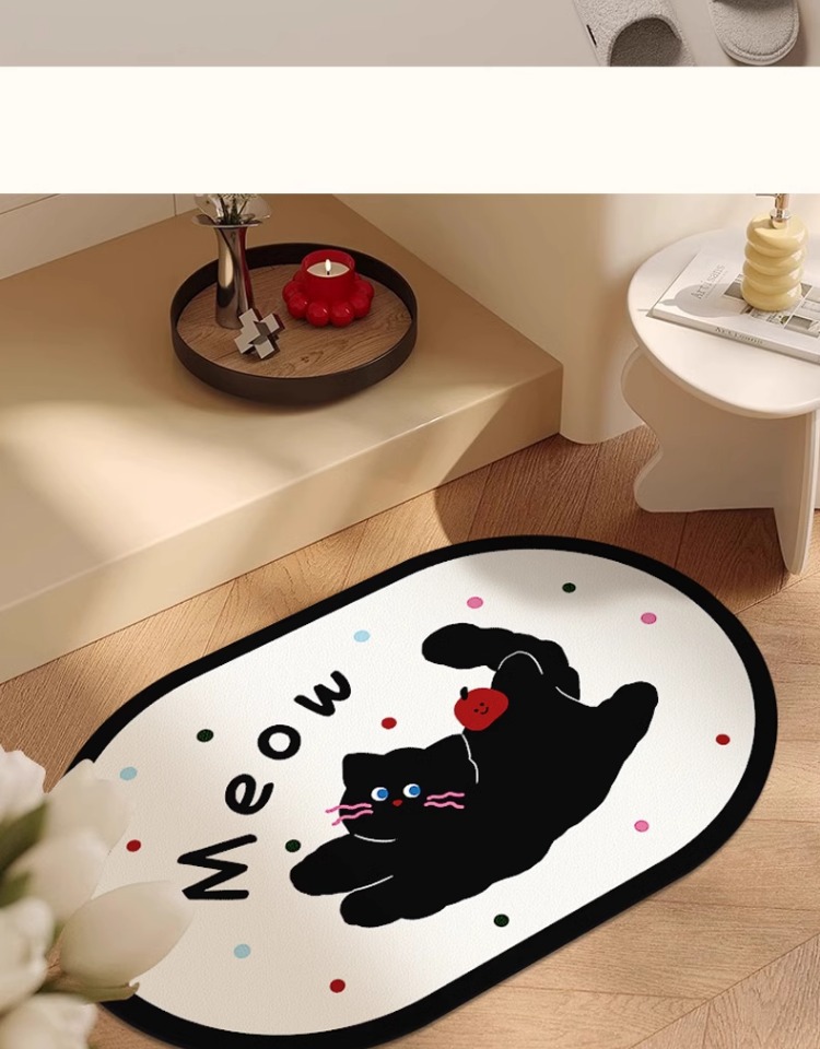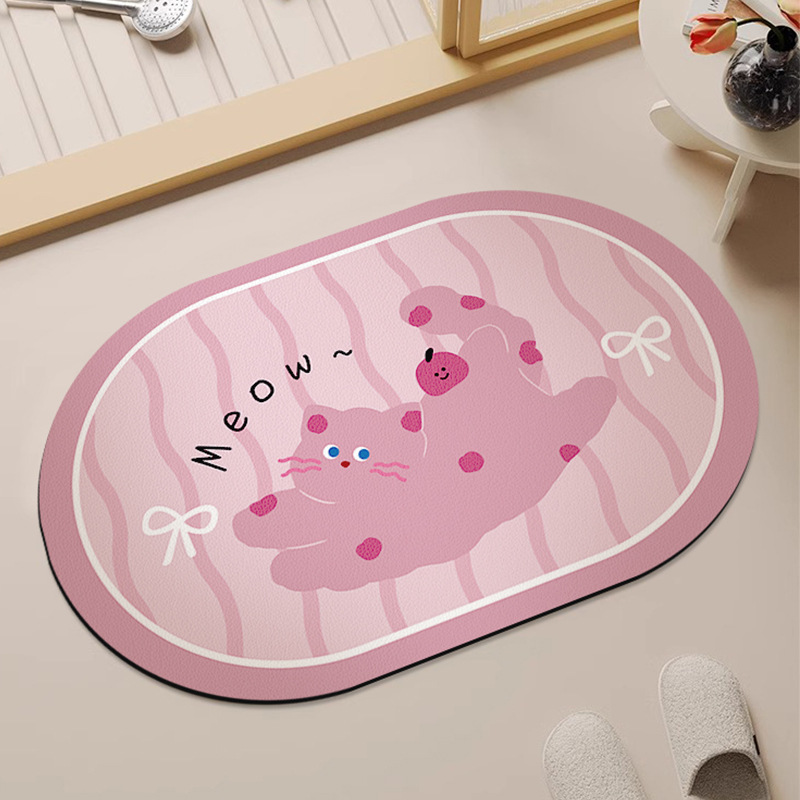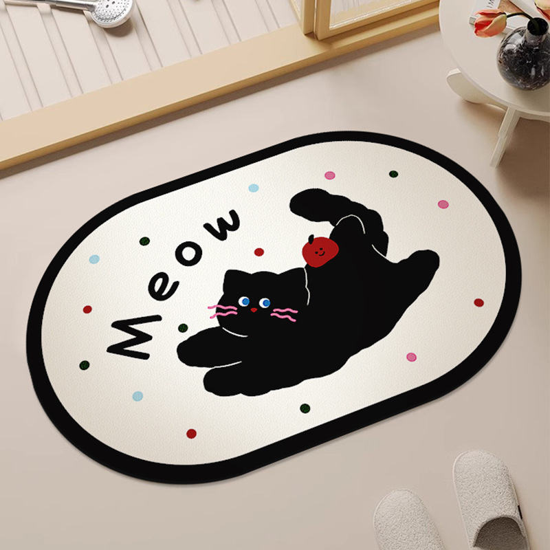 화장실 문 강한 흡수성 규조 진흙 발 매트 화장실 비 슬립 카펫 귀여운 만화 새끼 고양이 욕실 매트