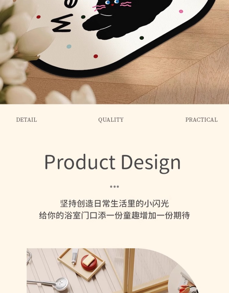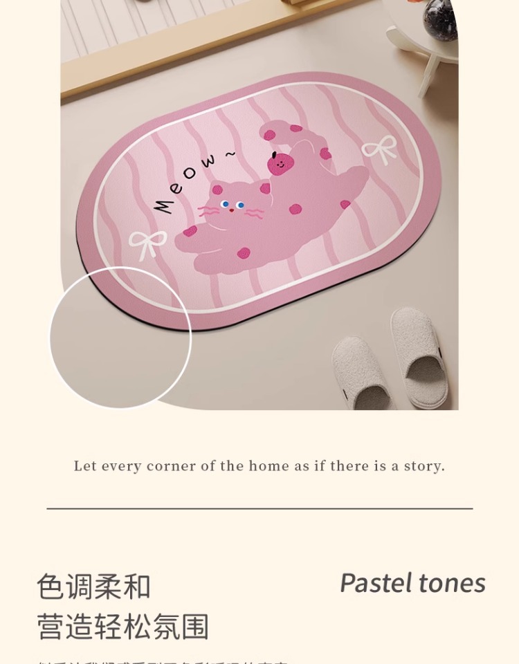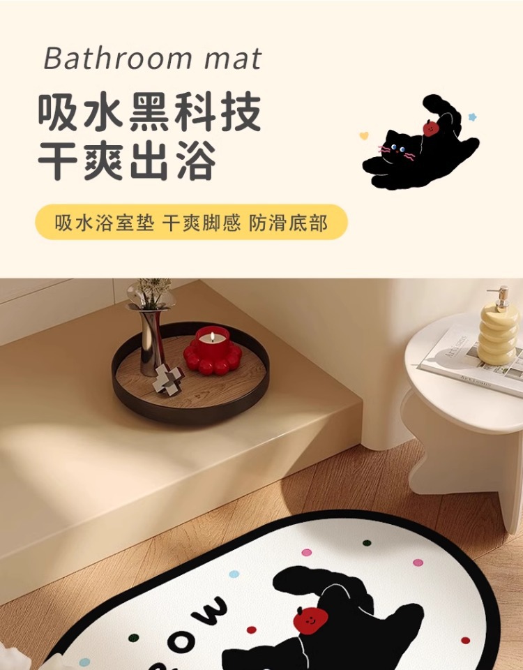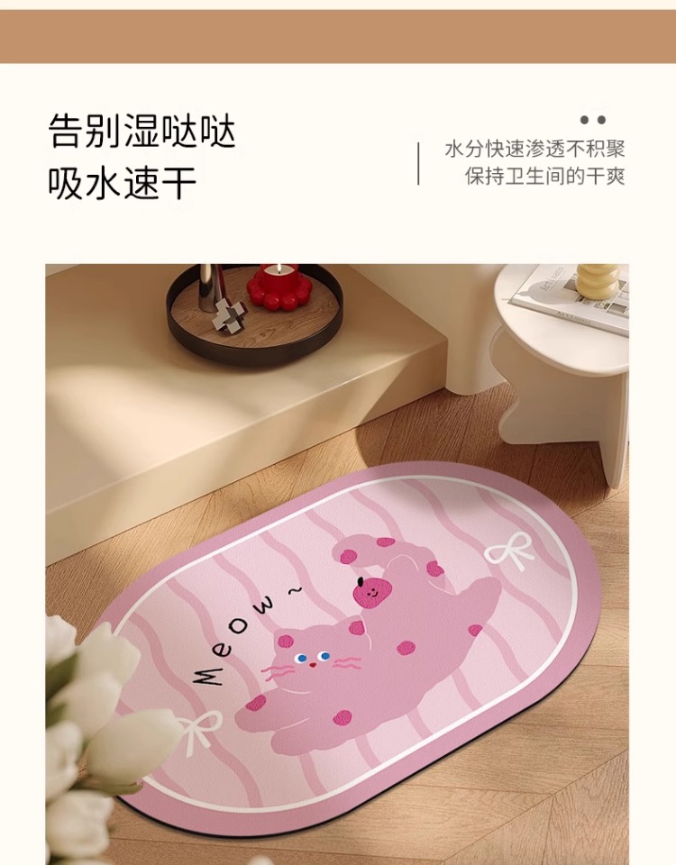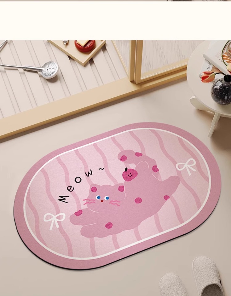 화장실 문 강한 흡수성 규조 진흙 발 매트 화장실 비 슬립 카펫 귀여운 만화 새끼 고양이 욕실 매트