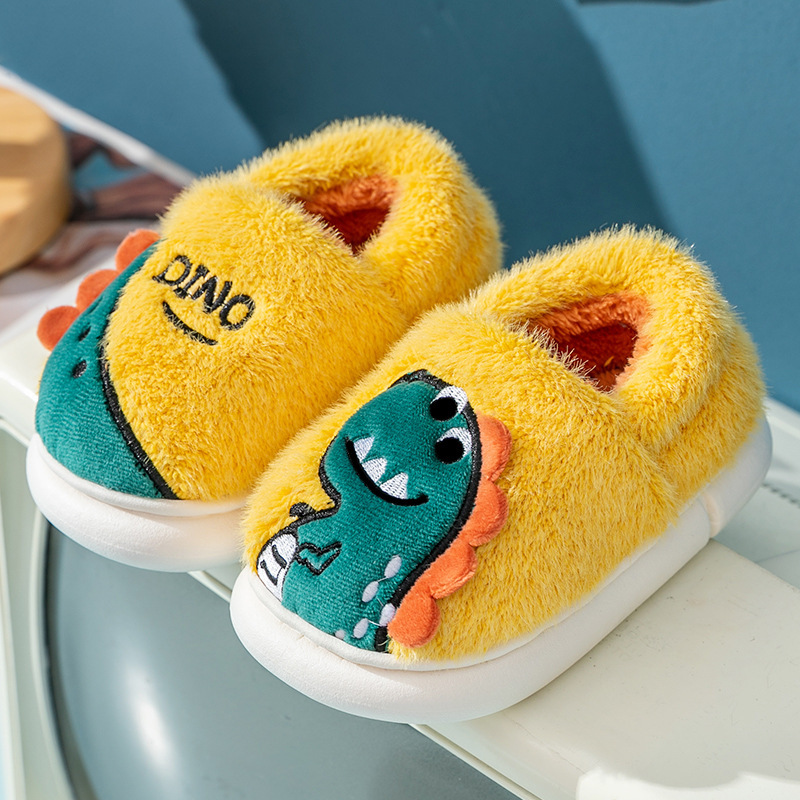 가을과 겨울 어린이 면화 가방 공룡 소년 실내 솜털 슬리퍼 어린이 패션 아동용 면화 신발스토어 가기