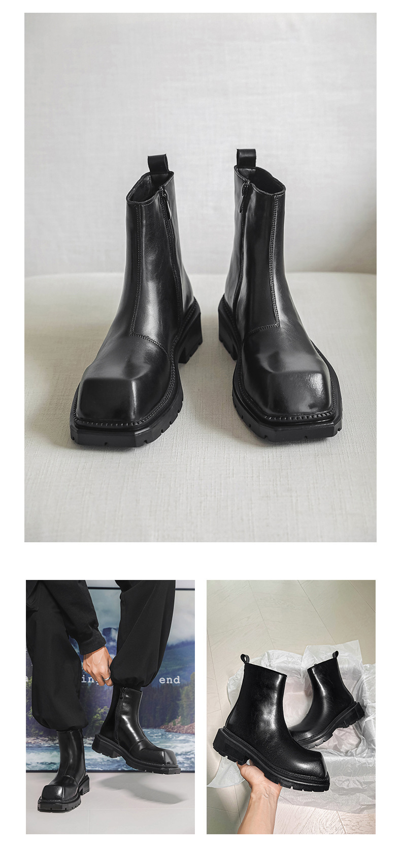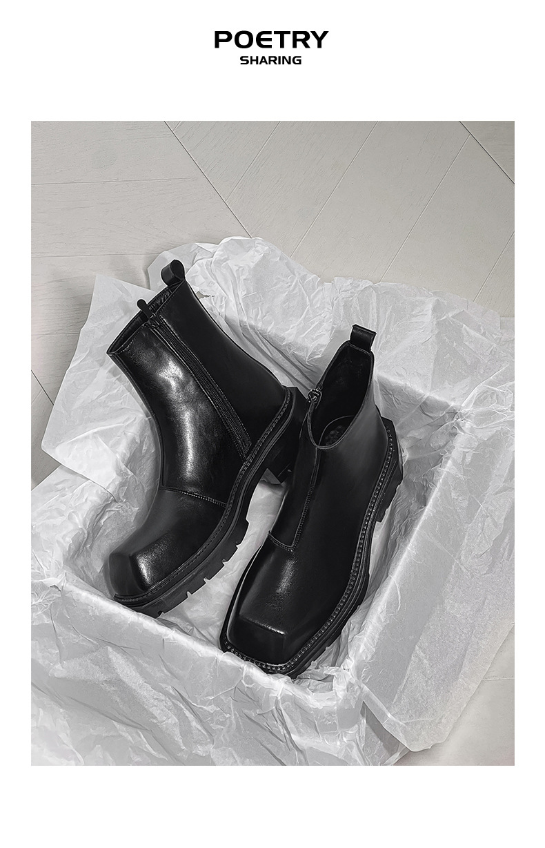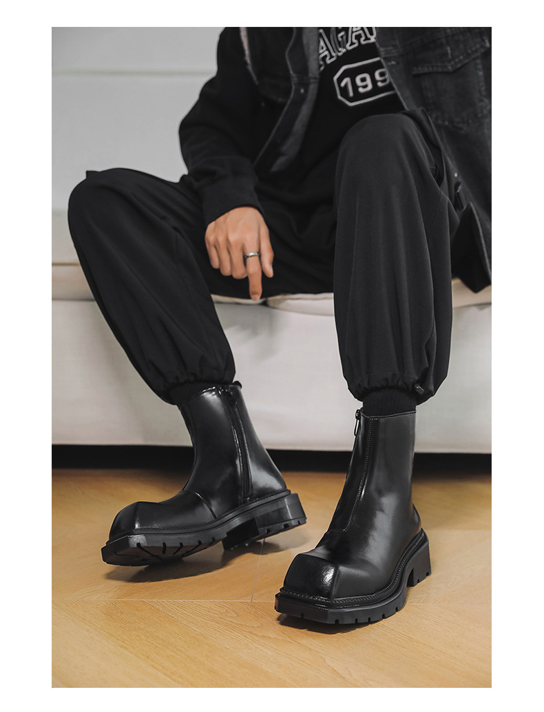 영국 레트로 오토바이 툴링 부츠 두꺼운 싱글 증가 퓨어 블랙 한국식 올 매치 사이드 지퍼 마틴 부츠 하이 엔드 남자 부츠스토어 가기