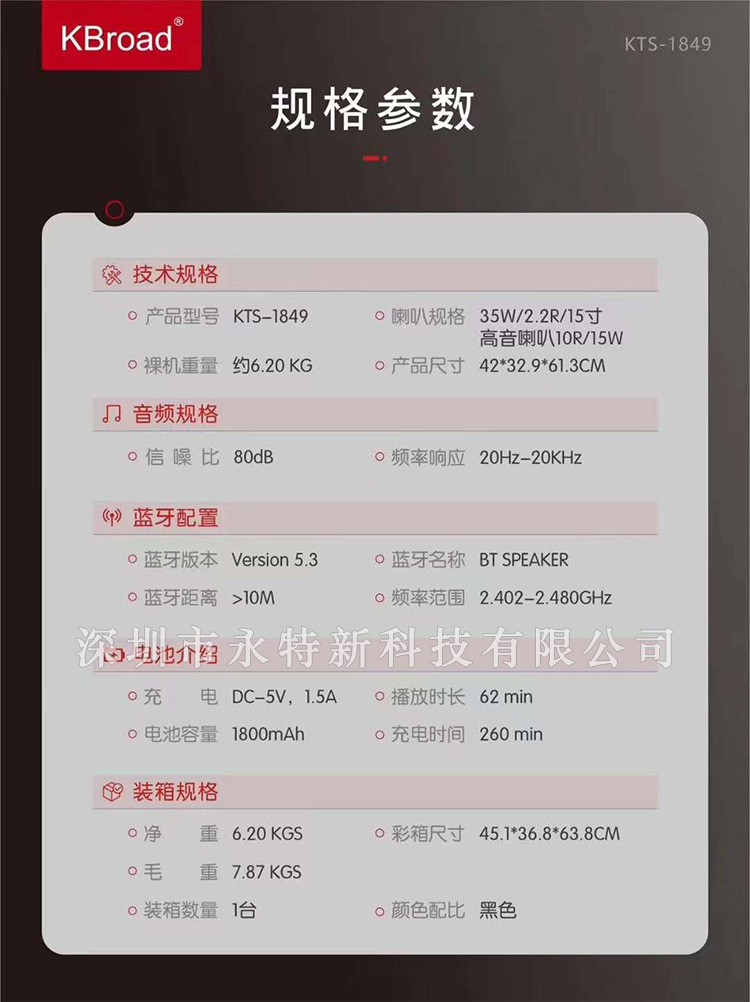 KTS 공장 도매 KTS 시리즈 KTS-1849 야외 휴대용 불꽃 빛 15 인치 블루투스 스피커