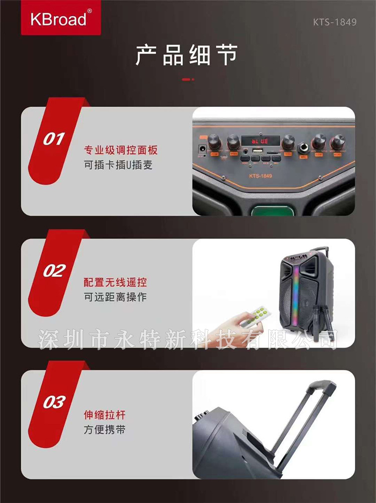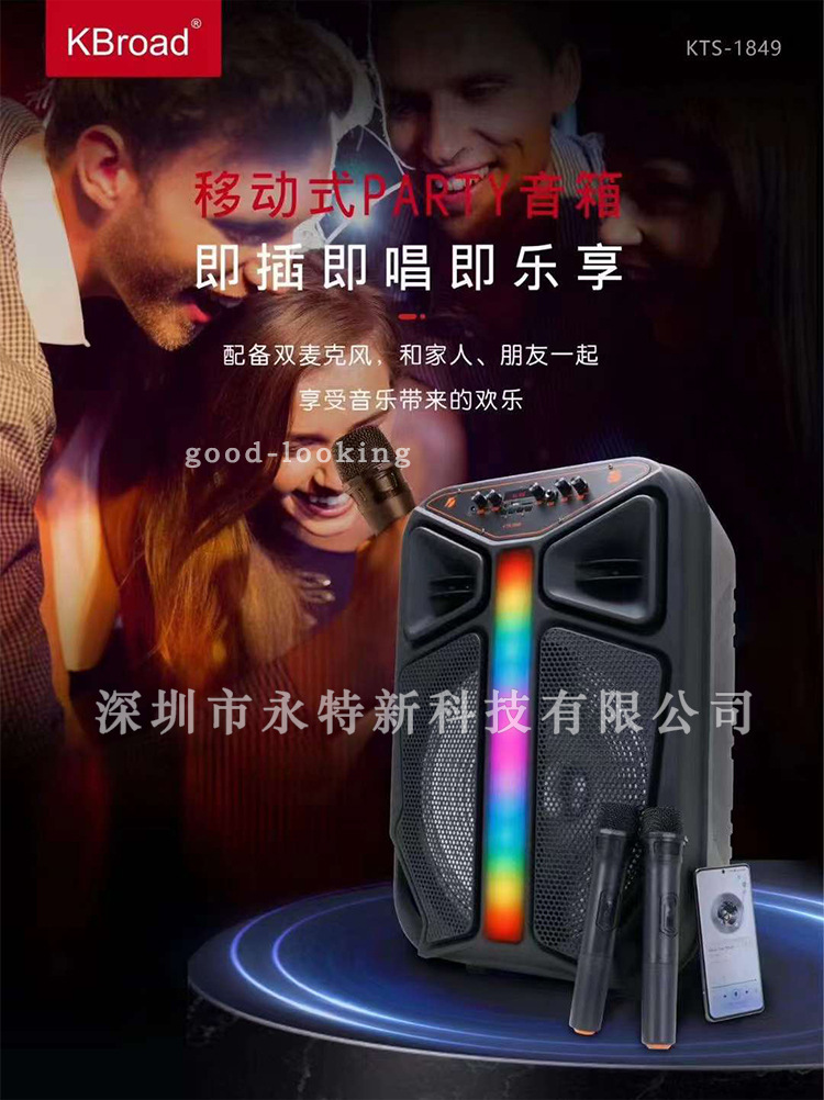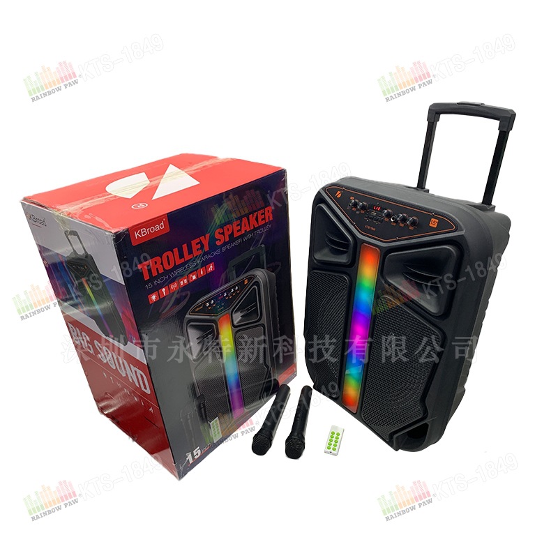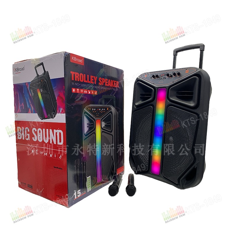 KTS 공장 도매 KTS 시리즈 KTS-1849 야외 휴대용 불꽃 빛 15 인치 블루투스 스피커스토어 가기